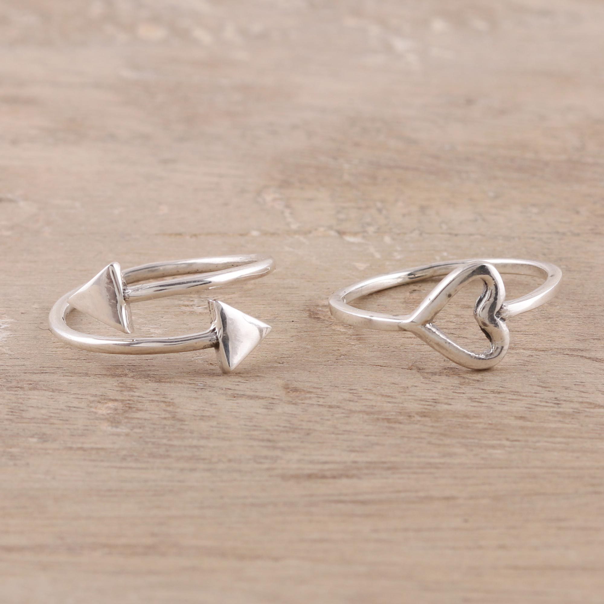 Sterling Silver Rings from India (Pair), 'Pierce My Heart'
