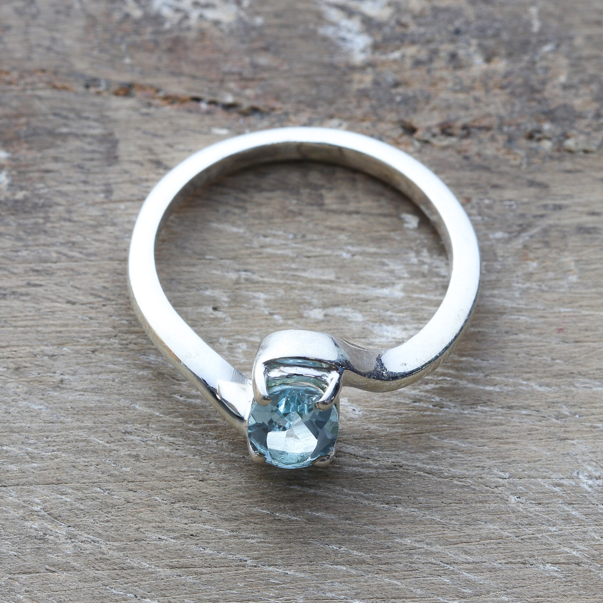 India's Chintan crowns an exquisite design with a one-carat blue topaz jewel, associated since ancient times with loyalty and righteousness. Working with sterling silver, the artisan creates this single stone ring in a high polish finish, adding a radiant touch to the accessory.