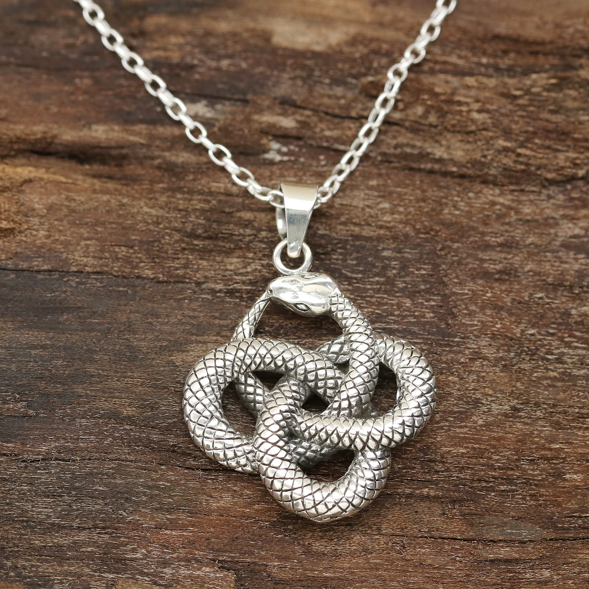 Twisting into a knotted shape, a snake forms the pendant of this men's necklace from India. Shivani Choudhary designs this bold accessory, which is crafted from sterling silver.