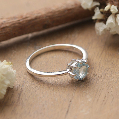 Sterling Silver Solitaire Ring with Blue Topaz from India, 'Frozen Light'