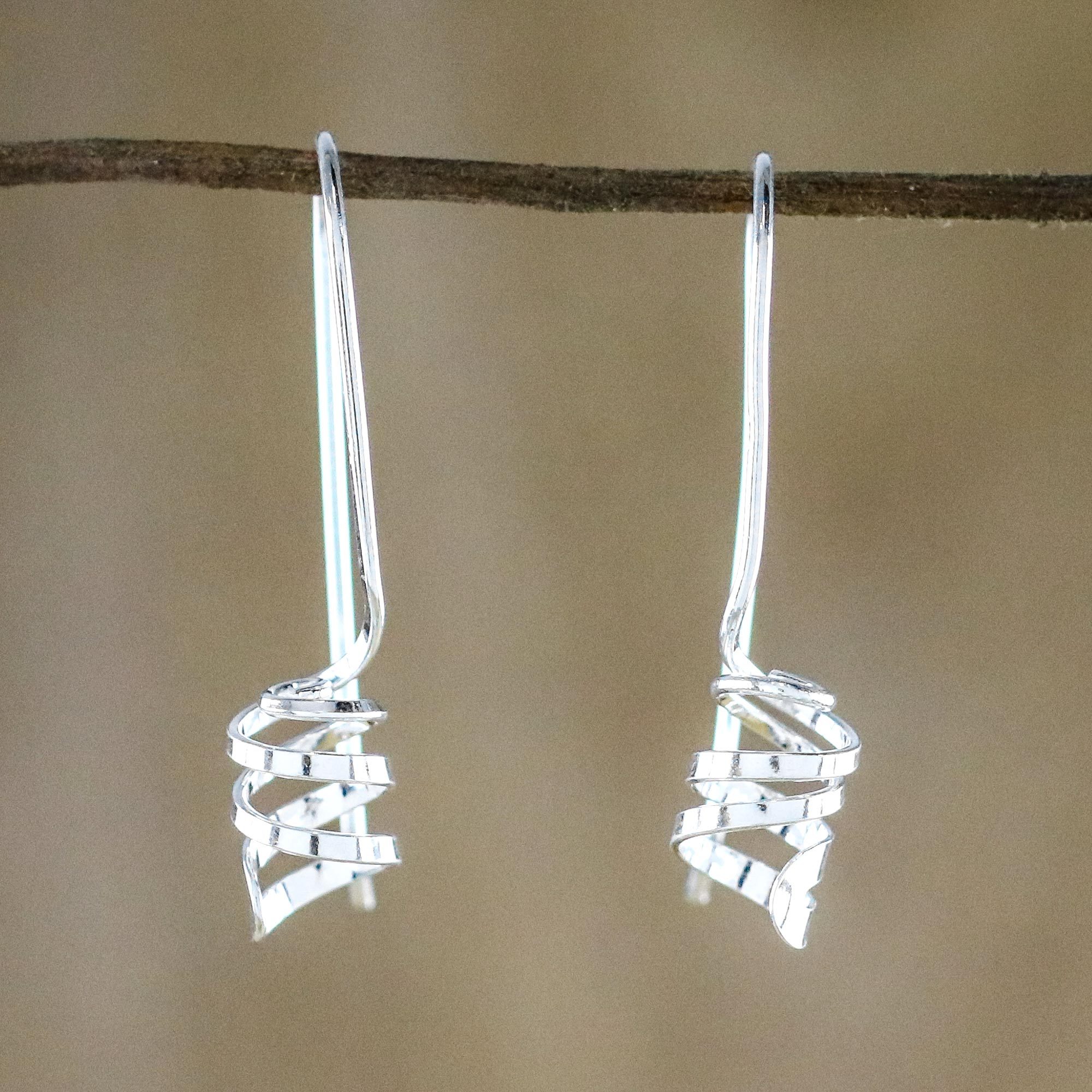 Sterling Silver Spiral Drop Earrings from Thailand, 'Cheerful Spirals'