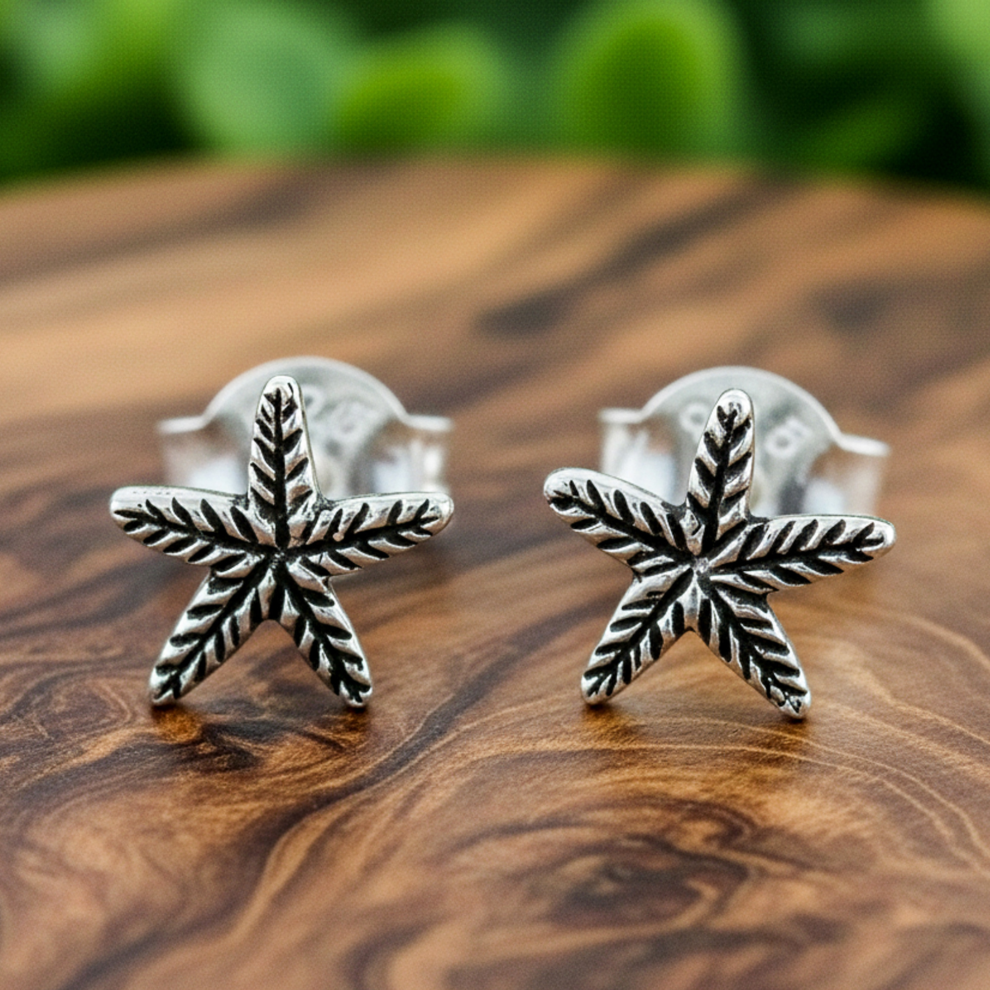 Two charming starfish are crafted of sterling silver and elaborated with a combination of finishes for an excellent addition to your wardrobe. These stud earrings are presented by Wadarat Supasirisuk, who works with local Thai artisans.