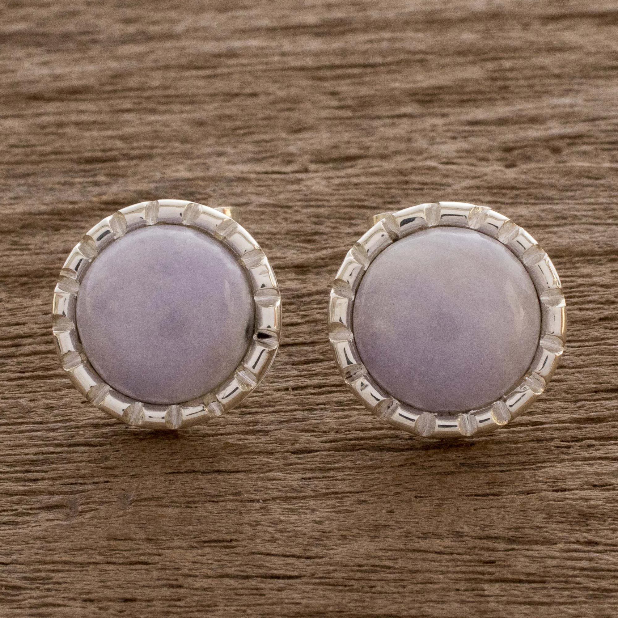Sterling Silver Stud Earrings with Lilac Jade Circles, 'Lilac Moon'