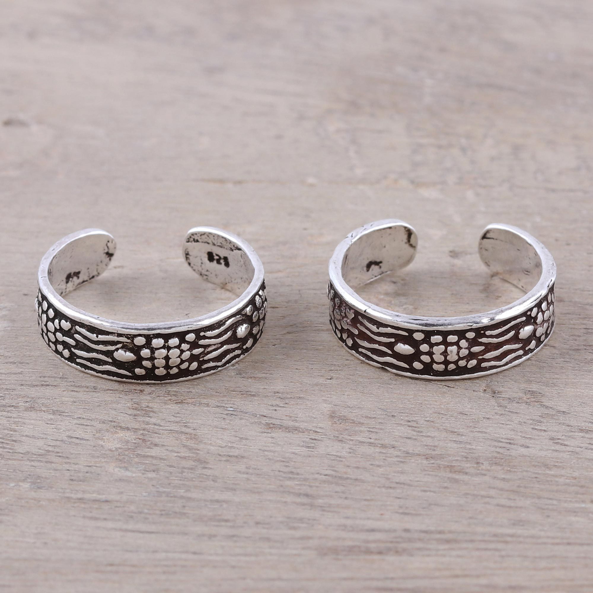 Sterling Silver Swimming Turtles Pair of Toe Rings, 'Happy Turtles'
