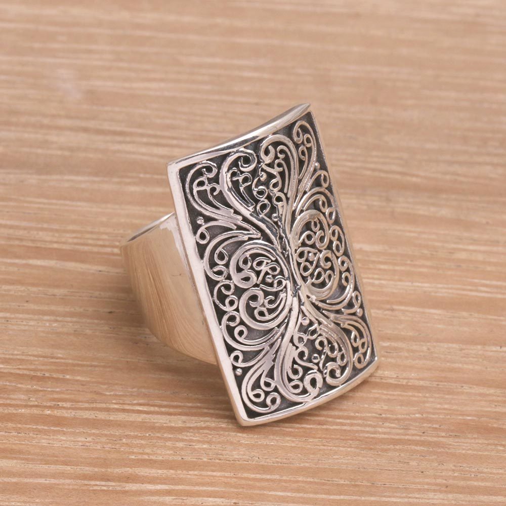 Sterling Silver Swirl Motif Cocktail Ring from Bali, 'Swirling Shield'