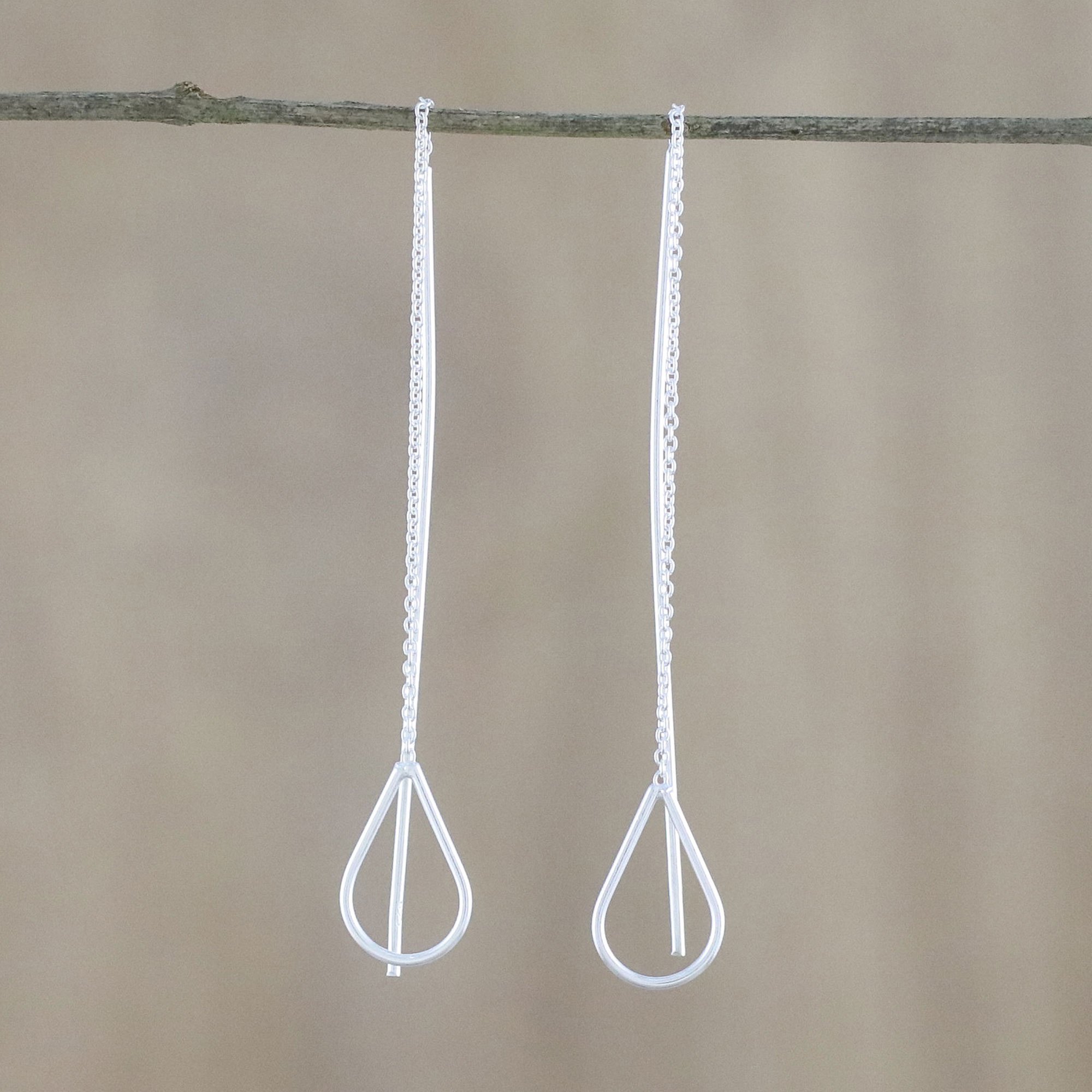 Sterling Silver Teardrops Long Threader Earrings Thailand, 'Plummet'