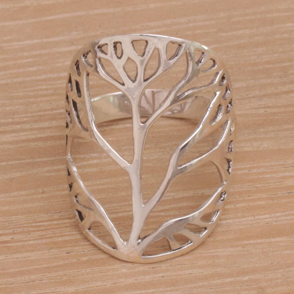 Sterling Silver Tree Openwork Cocktail Ring from Indonesia, 'Tree of Desire'