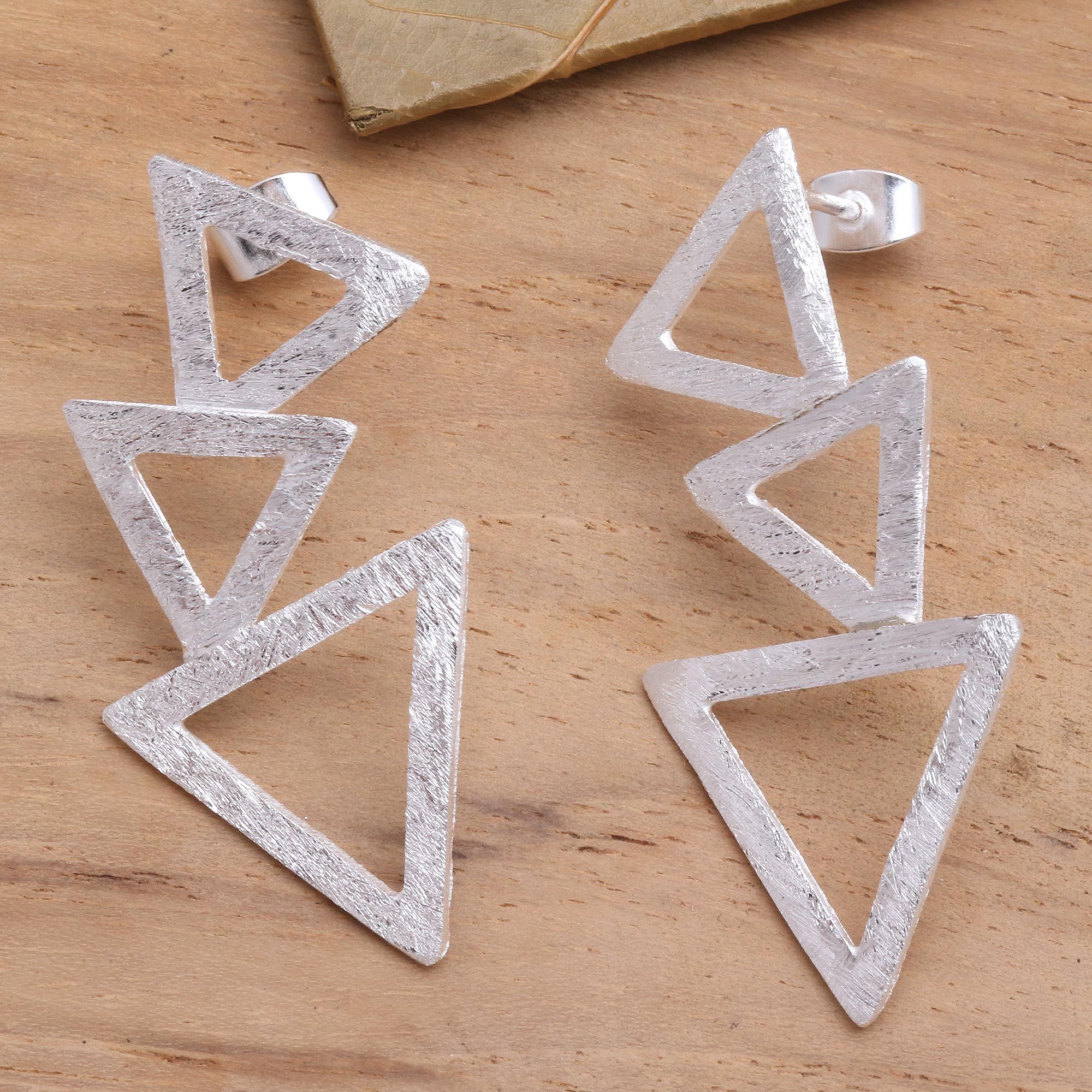 Sterling Silver Triangle Modern Drop Earrings, 'Tumbling Triangles'