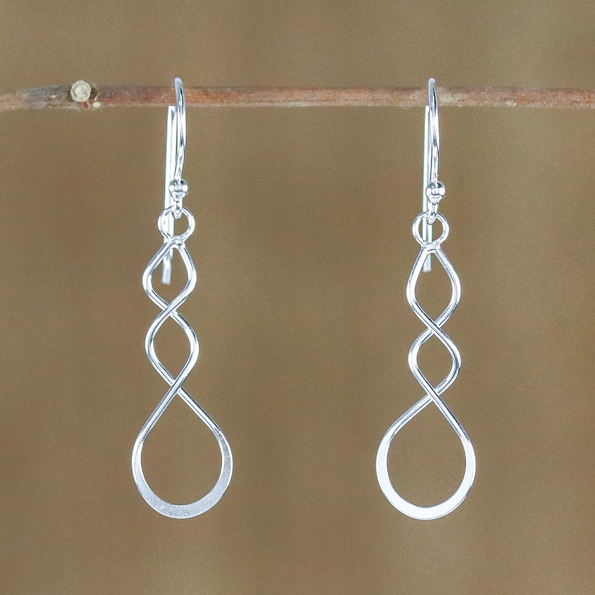 Sterling silver forms twisting droplet shapes in this pair of dangle earrings from Thailand. Crafted by local artisans, this lovely accessory is presented by Lalana, who works with family members.