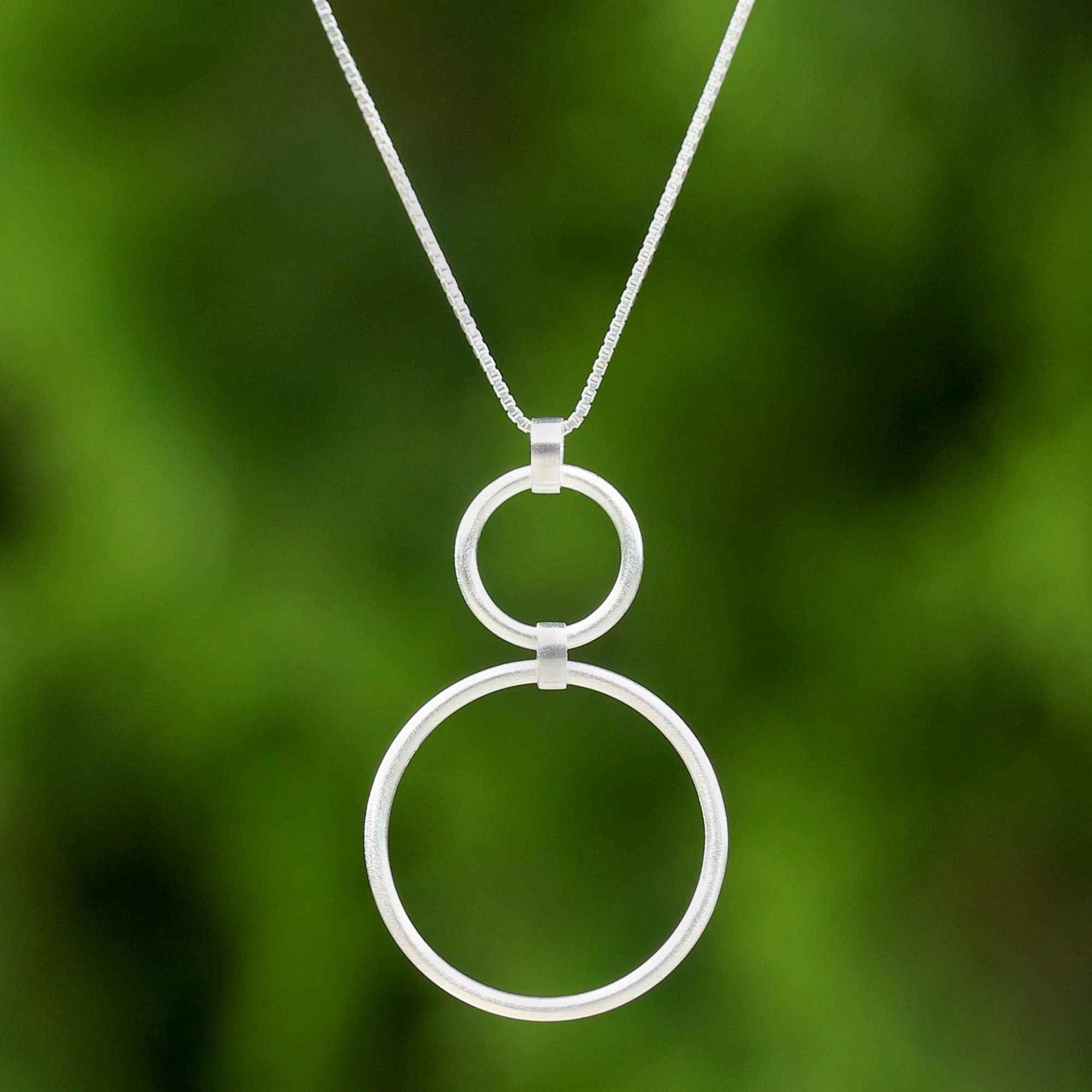 Sterling Silver Two Circles Pendant Necklace from Thailand, 'Cycles'