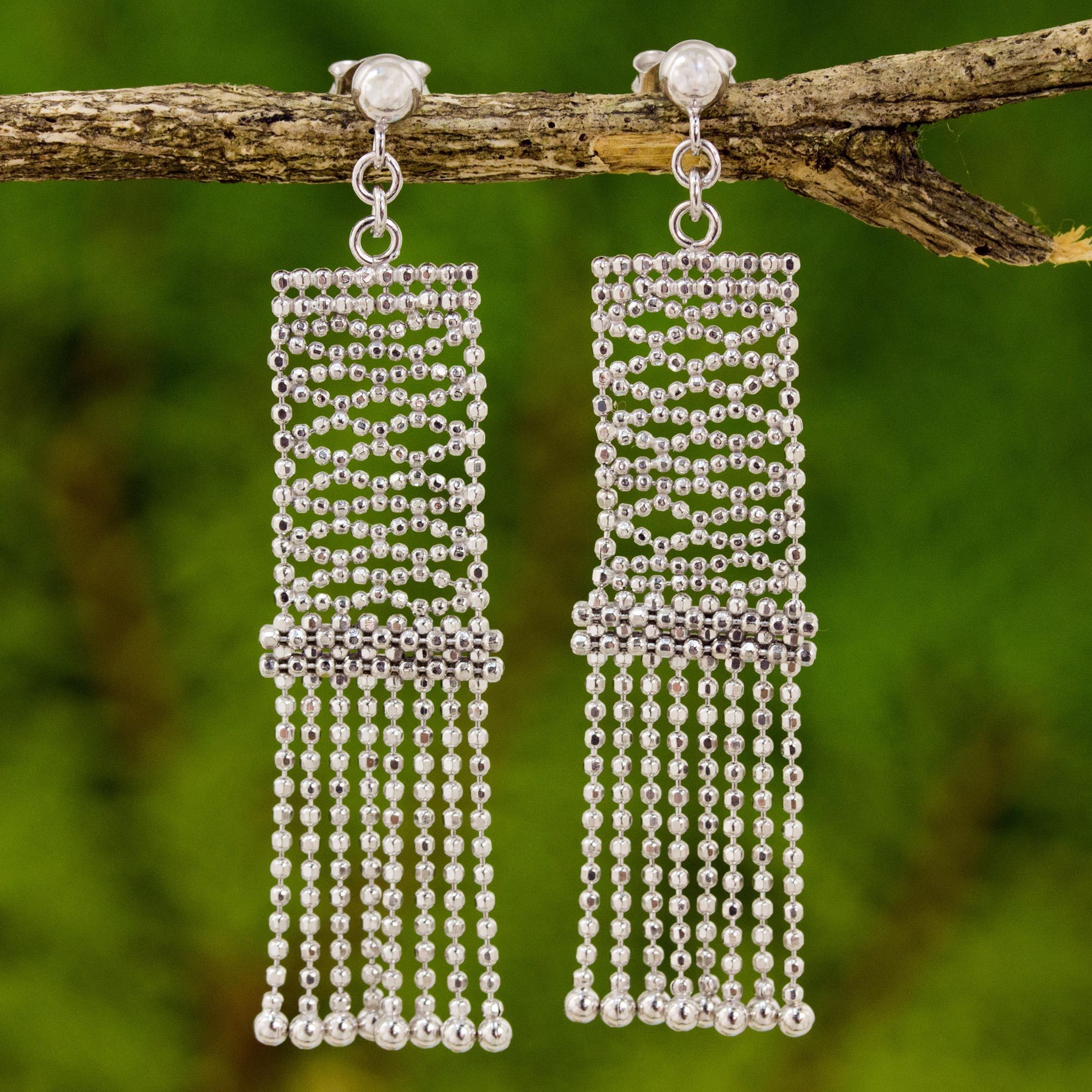 Sterling Silver Waterfall Earrings on Posts from Thailand, 'Flying Carpet Chandeliers'