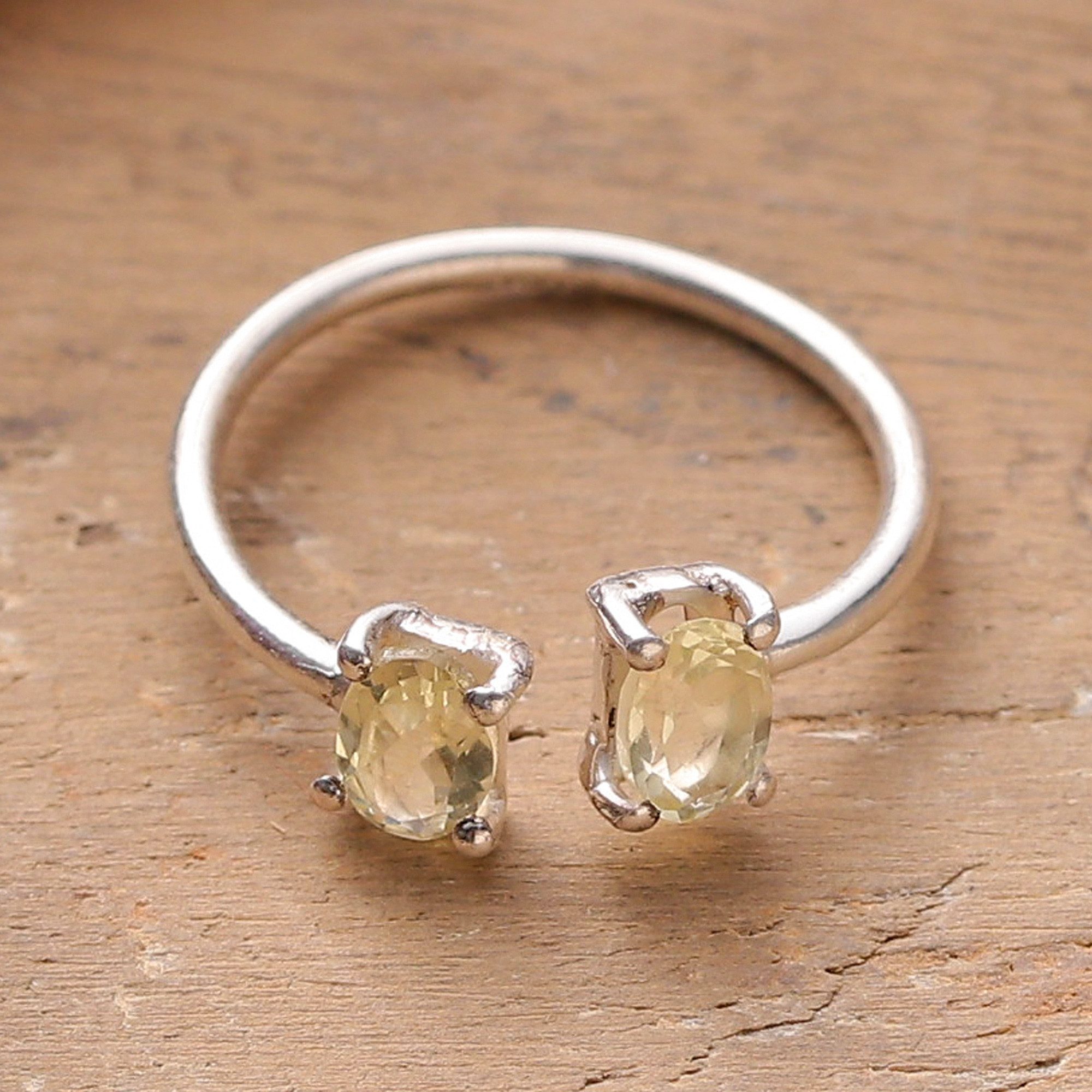 Sterling Silver Wrap Ring with Faceted Lemon Quartz Stones, 'Twin Glow'