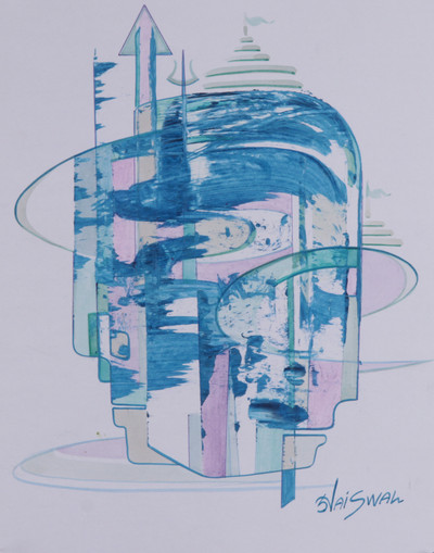 An aura of serenity invades the new temples of Sunil Jaiswal's expressionist composition. Made with acrylic on paper, the artwork portrays the peaceful side of spirituality through soft brushstrokes, each giving life to an ethereal temple.