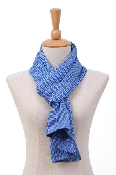 Striped Lapis Blue 100% Rayon Scarf Crafted in Thailand, 'Lapis Rhythm'