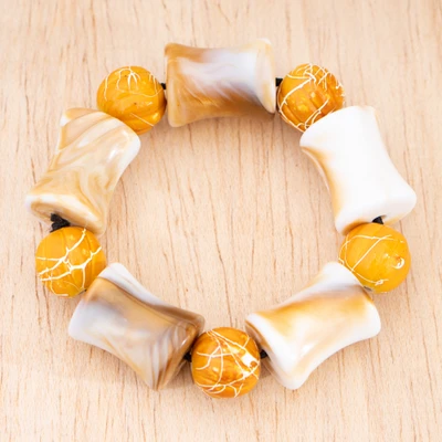 Summer-Inspired Yellow and Ivory Beaded Stretch Bracelet, 'Sunny Triumph'