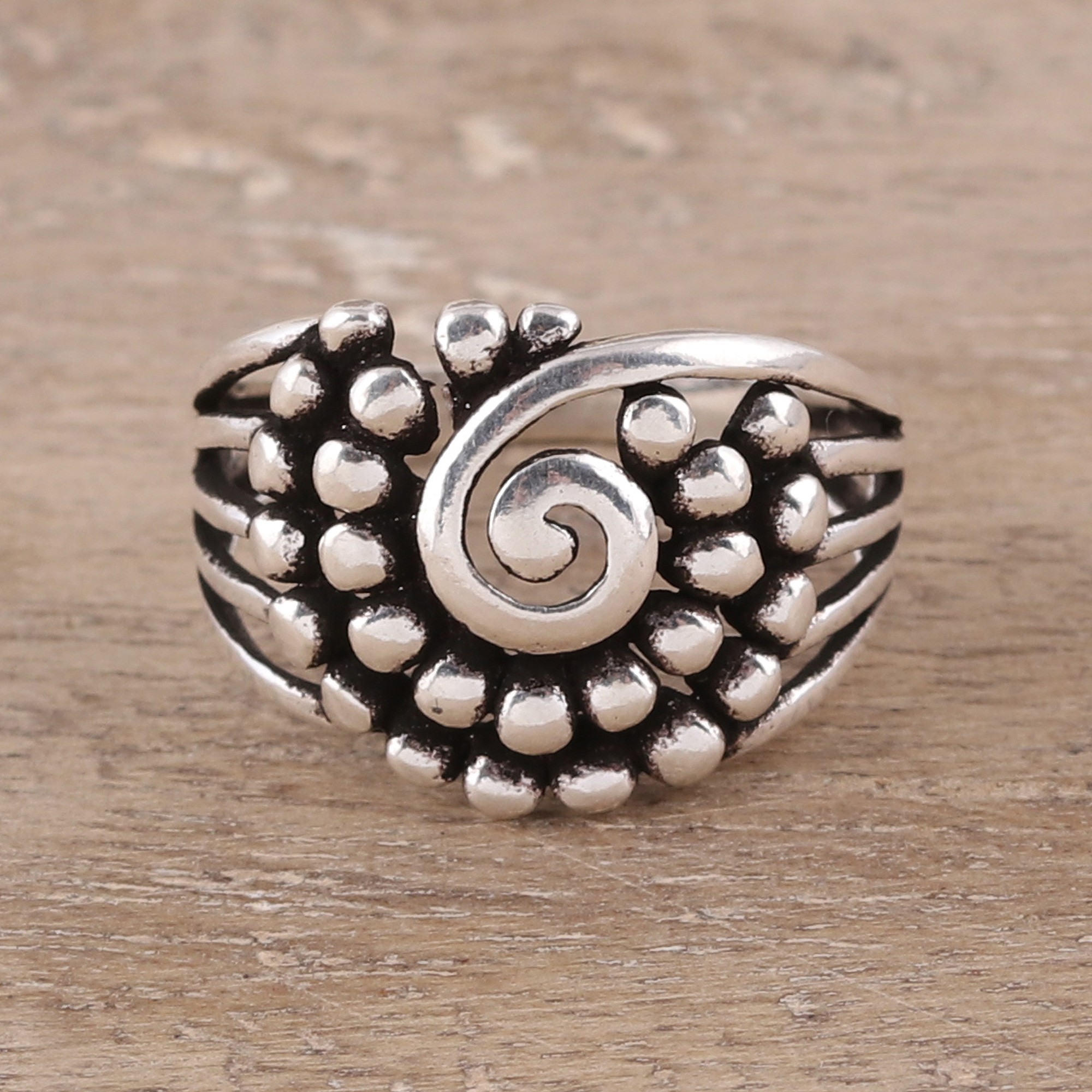 Swirl Pattern Sterling Silver Band Ring from India, 'Modern Swirl'