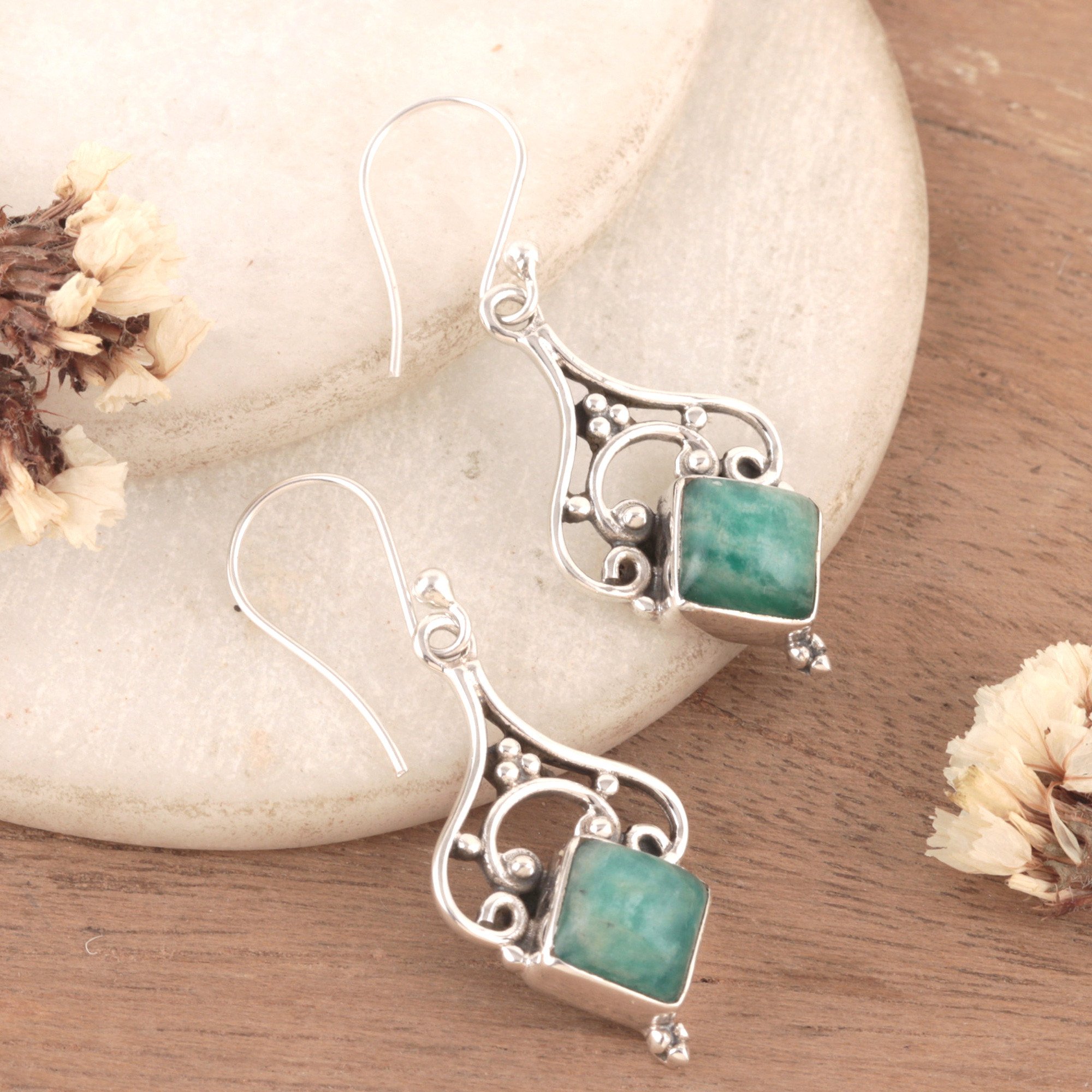 A palette from the tranquil scapes of the Indian forest aligns Shanker's newest design with your essence. These dangle earrings let sterling silver crown faceted amazonite stones, inviting sylvan beauty to your ensembles.