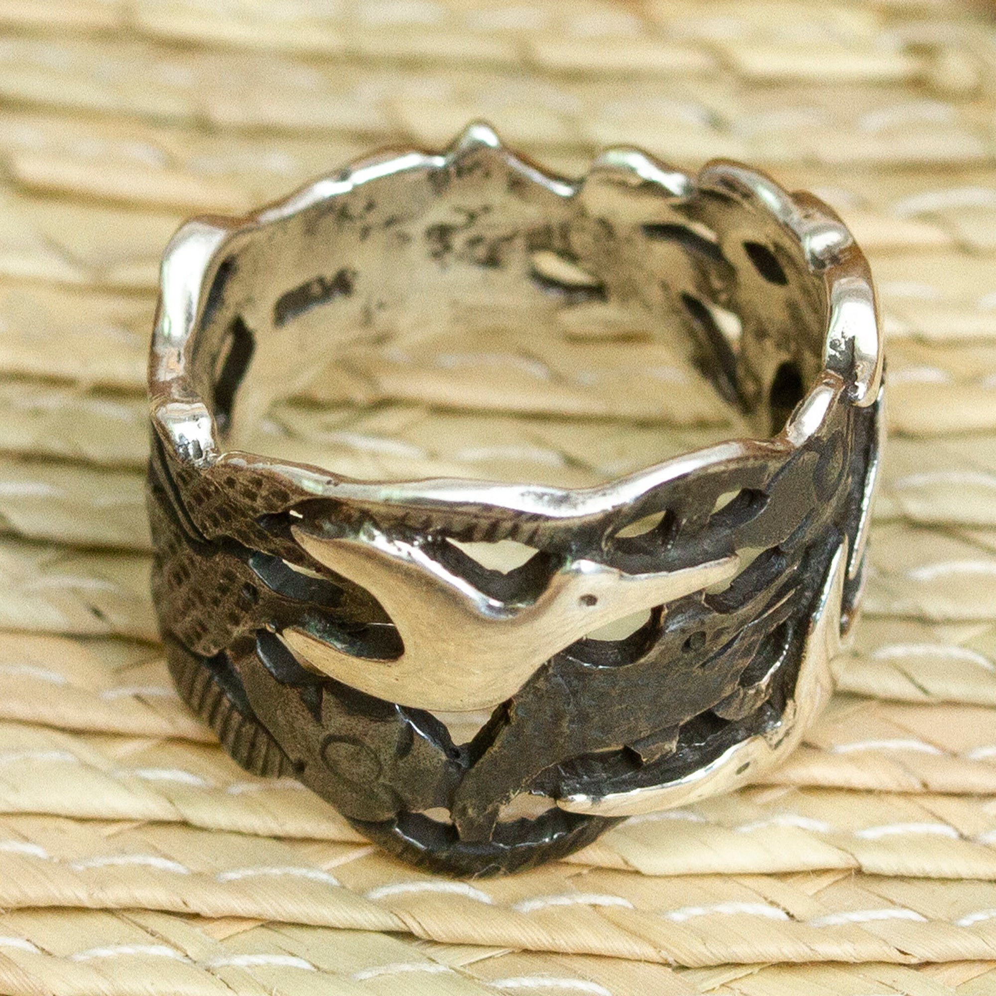 Taxco 950 Silver Band Ring with Seagulls in Flight, 'Seagulls in Flight'