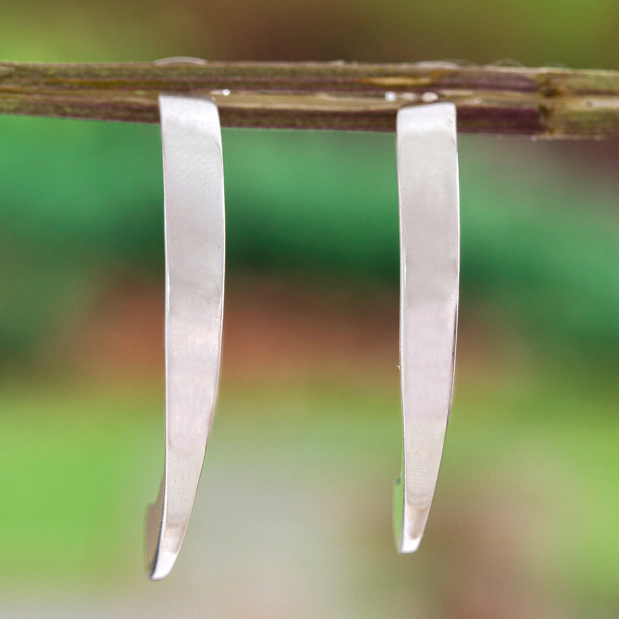Working in the style of Taxco handcrafted silver, Mikelo represents the third generation in a family of Mexican artisans. He finds inspiration in the moon to craft this pair of minimalistic earrings with a modern vibe, forming them into half-hoops with a beautiful high-polish finish.