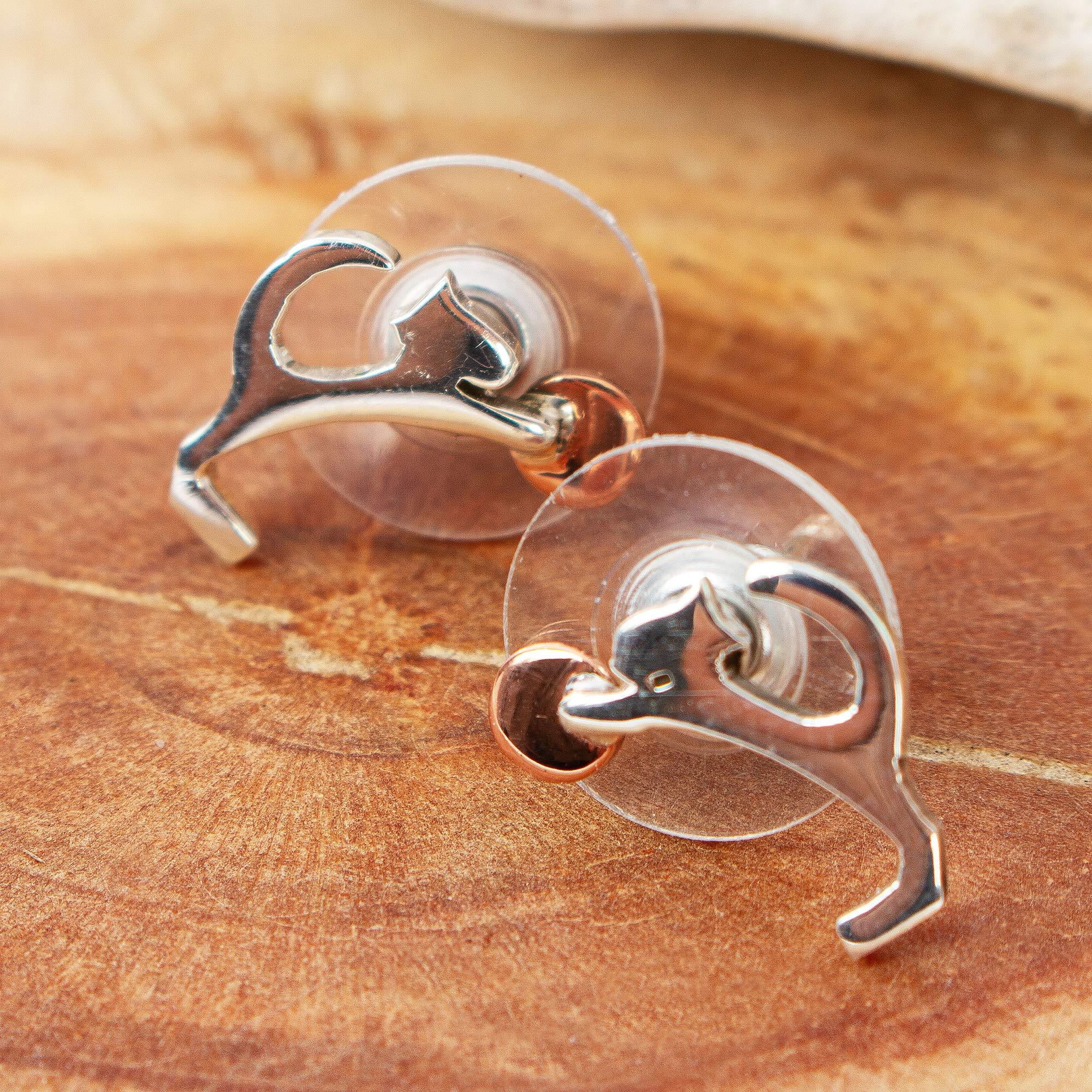 Taxco Kitty Cat Silver and Copper Petite Button Earrings, 'Playful Kitties'