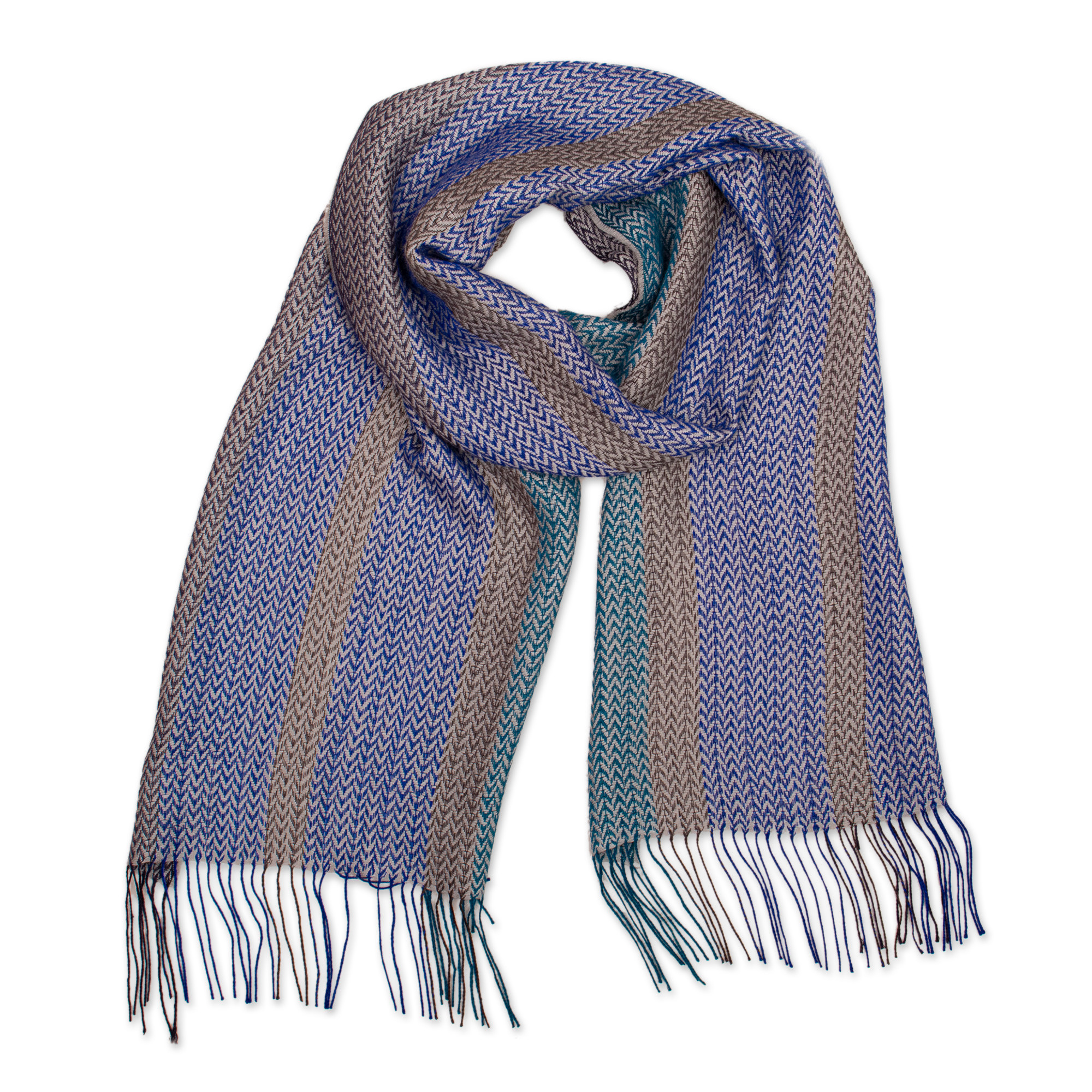Textured Baby Alpaca Blend Scarf with Chevron Patterns, 'Cloud Forest'