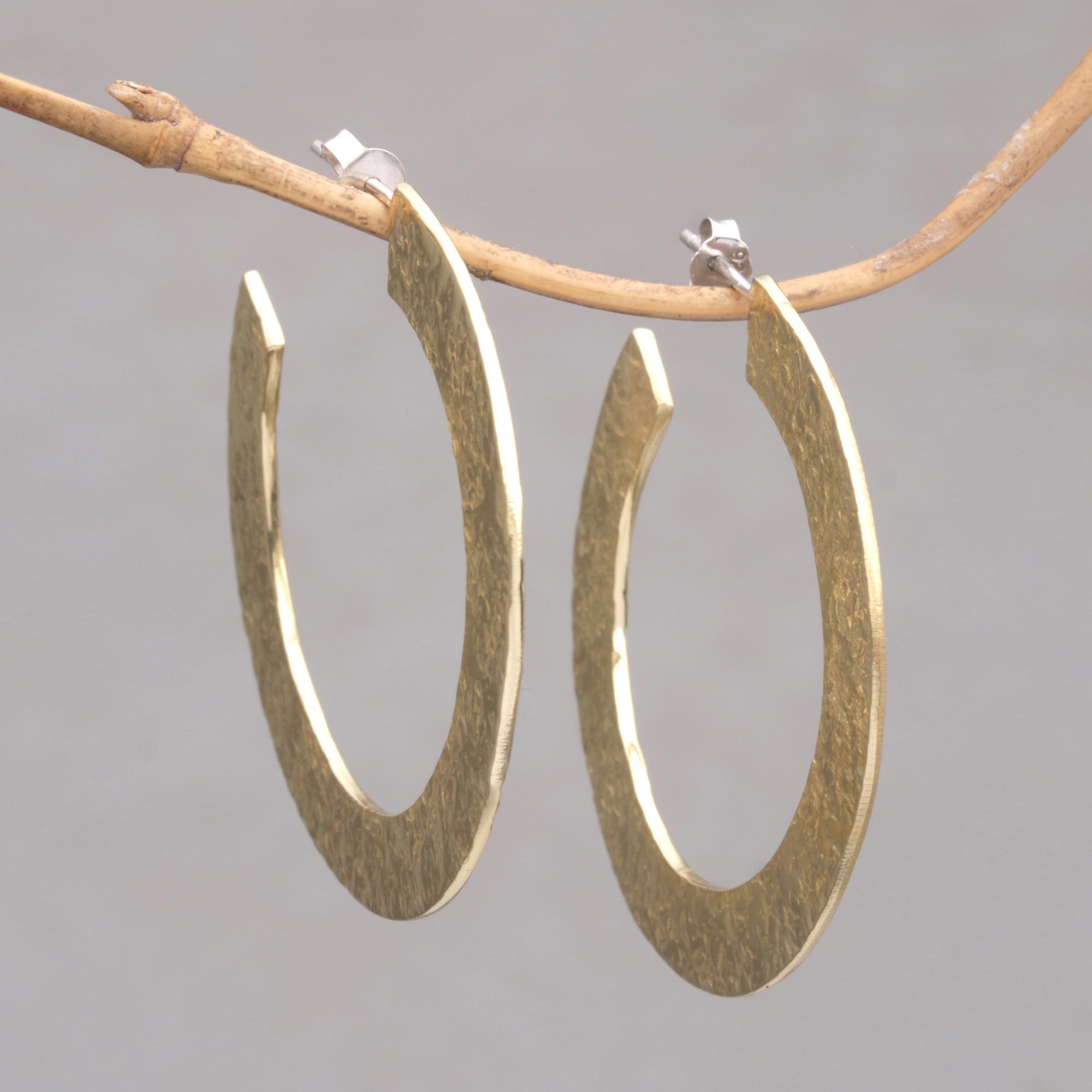 Hariyono of Indonesia creates this gorgeous pair of half-hoop earrings. This pair is crafted of brass with a textured finish and are worn on sterling silver posts.