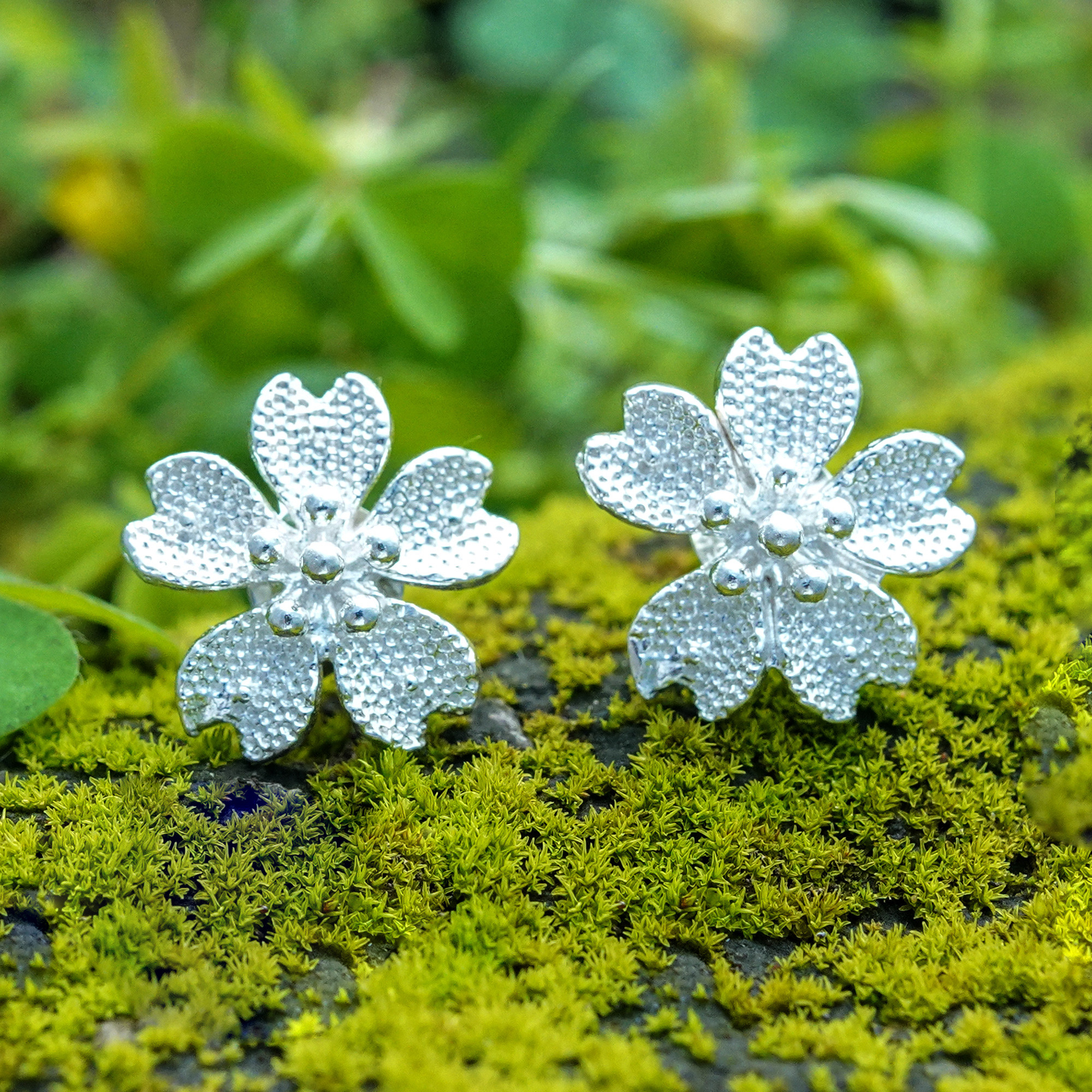 Nature's poetry unfolds in sterling silver through these awe-inspiring floral button earrings that capture spring's essence year-round. Balinese artisan Yuniati creates delicate cherry blossoms from precious metal, resulting in chic accessories where every textured detail whispers of gardens in perpetual bloom.