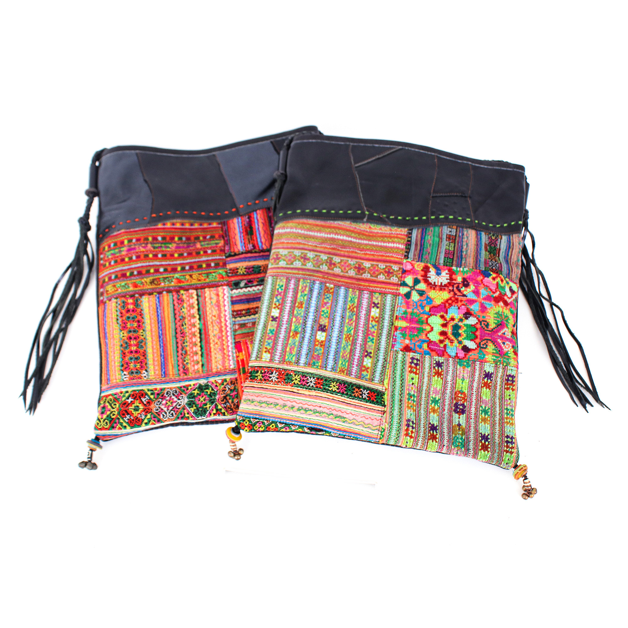 Thai Hill Tribe Patchwork Cotton Blend and Leather Sling Bag, 'Posh Patchwork'