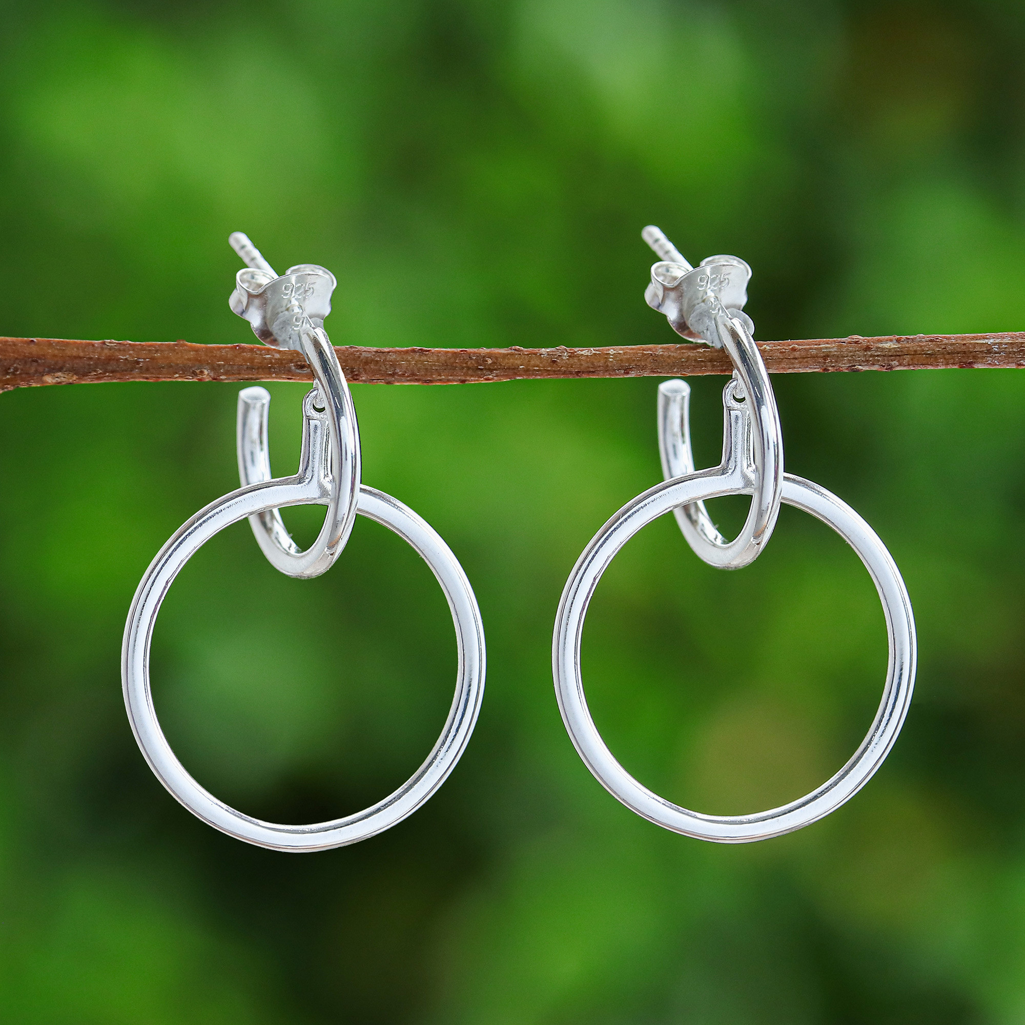 Thai Modern High-Polished Sterling Silver Dangle Earrings, 'Ethereal Life'