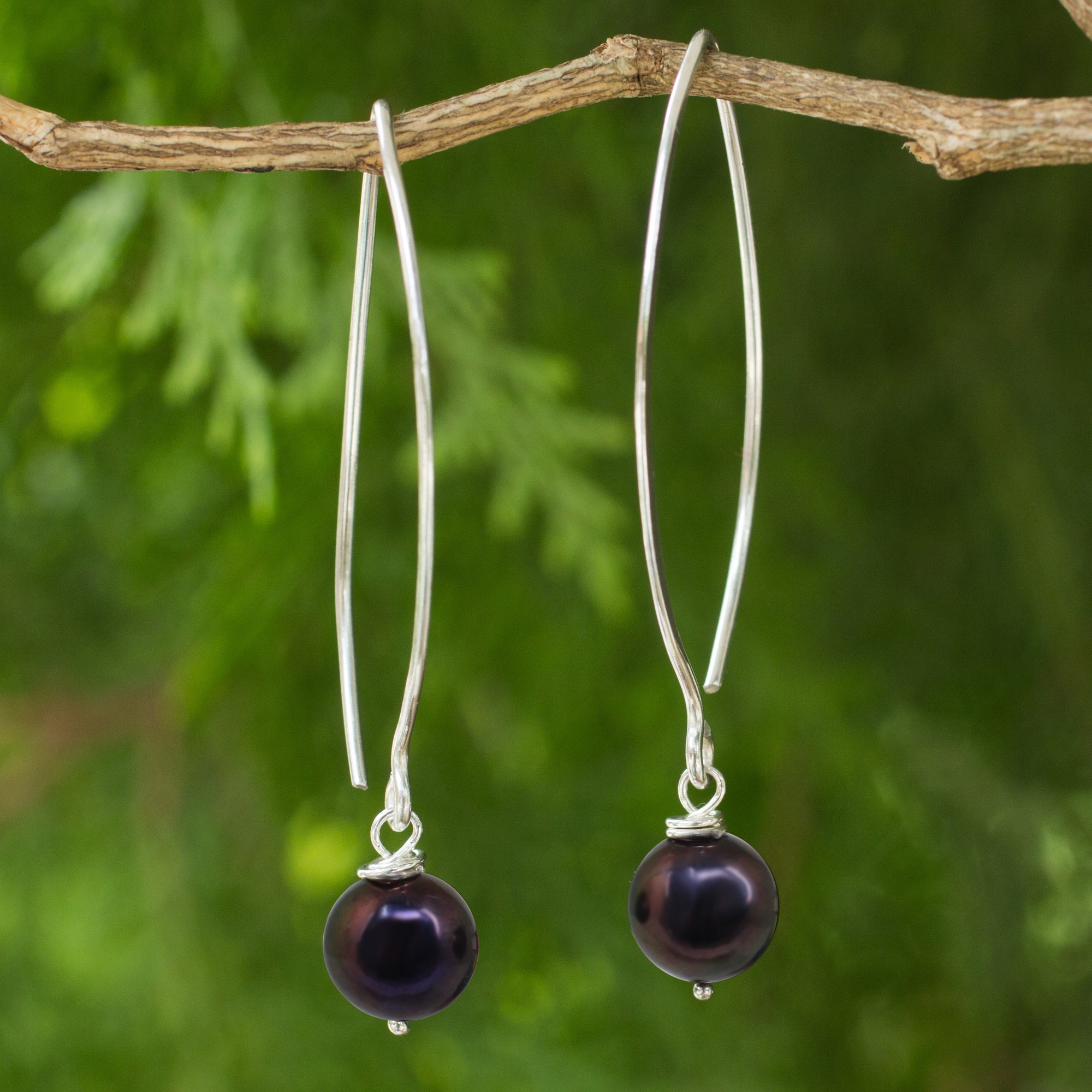 With their unique color, this beautiful set of earrings brings a beautiful mystique to pearls. Crafted by Khun Boom of Thailand, these earrings are crafted with sultry gray pearls and .925 sterling silver. Captivating elegance exudes from this artful pair.