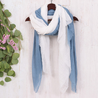 Thai Soft Snow White and Cerulean Blue 2-Piece Scarf Set, 'Celestial Day'