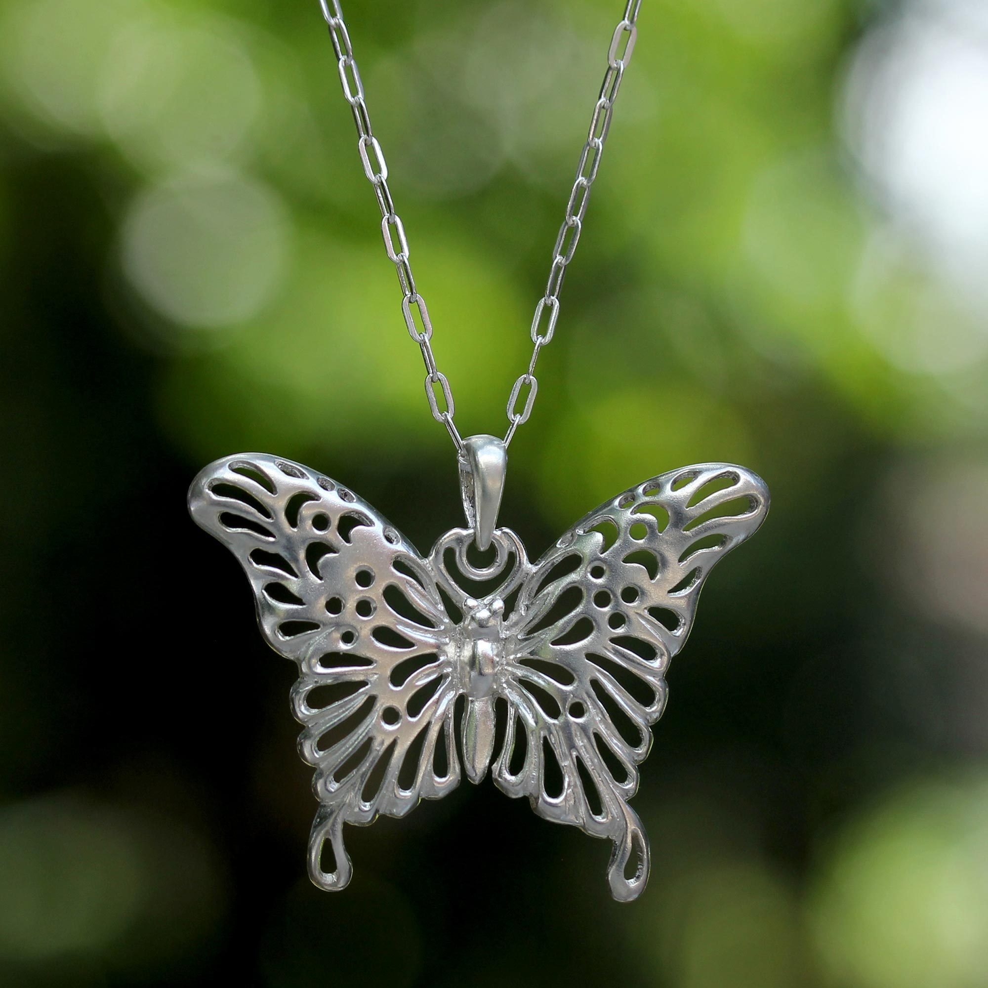 Long regarded as a symbol of bright new beginnings, this butterfly carries a message of hope on fluttering wings. Presented by Aoy of Thailand, this unique pendant is handcrafted with delicate sterling silver filigree and is suspending from a graceful sterling silver link chain.