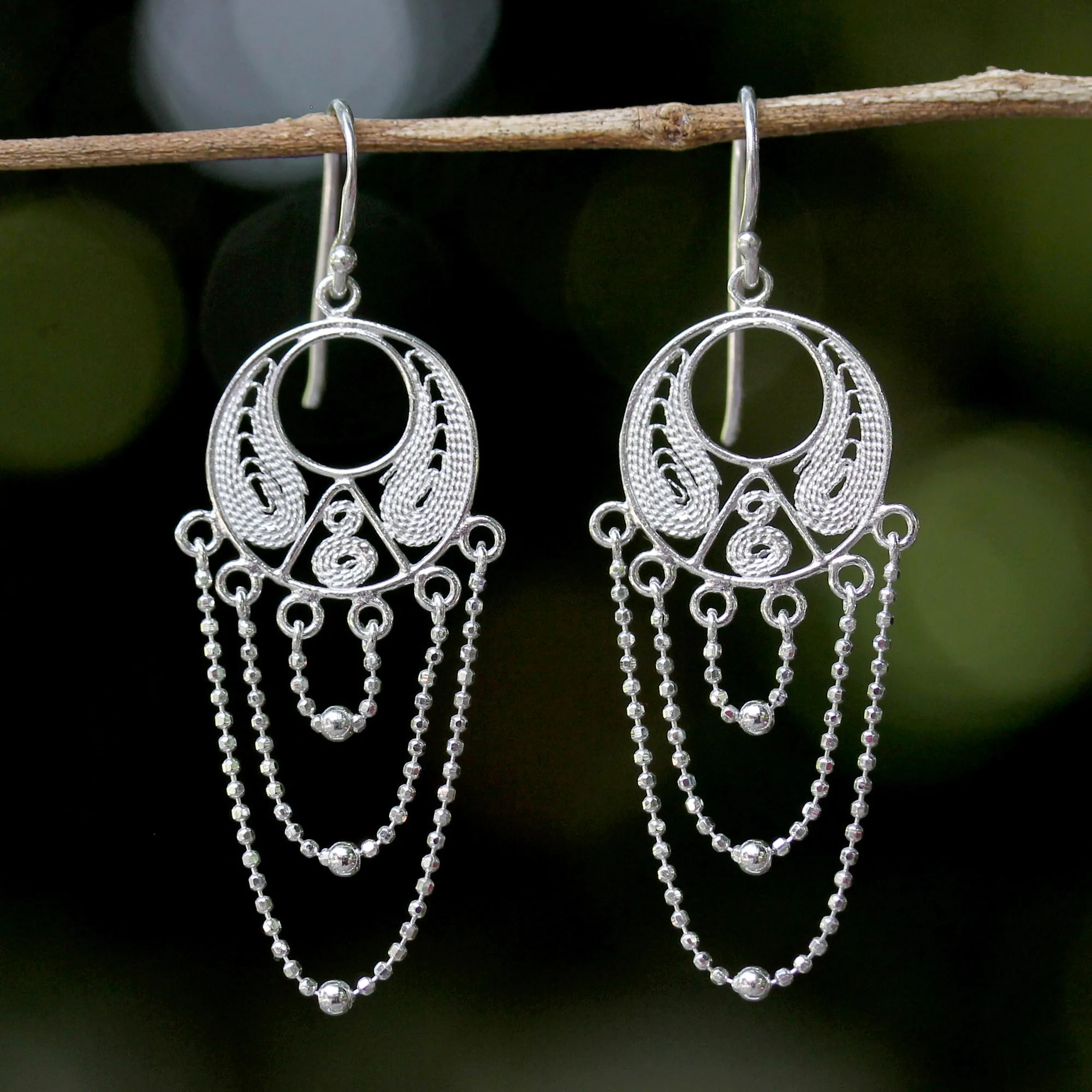 Thai Sterling Silver Circular Filigree Chandelier Earrings, 'Blessed Links'