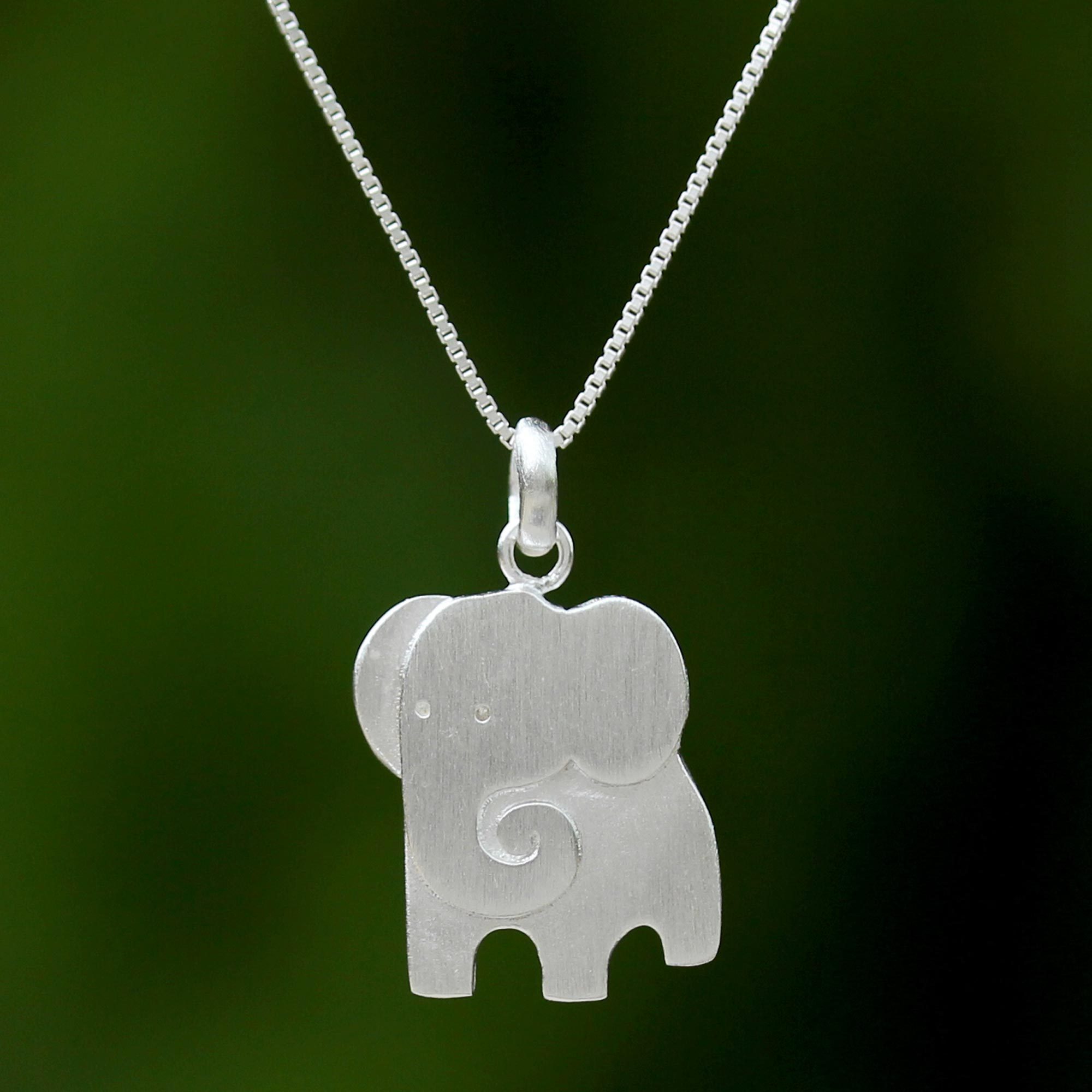 An elegant elephant is captured in relief, hanging from the neck in this pendant necklace from Thailand. Jantana designs the necklace, crafting it from layers of sterling silver for a 3D appearance. With a brushed-satin finish, the pendant hangs from a petite box chain.