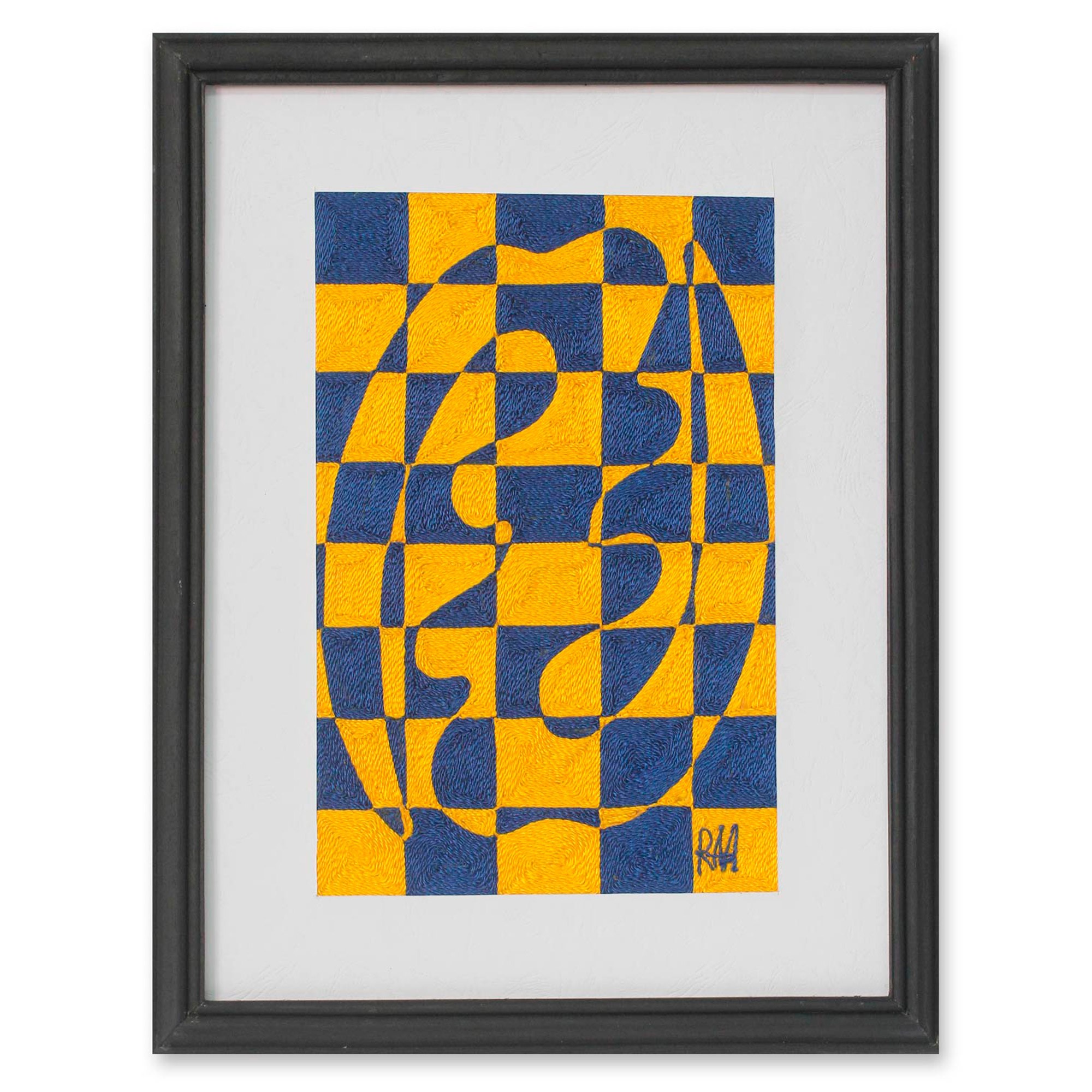 Cotton thread on card stock, the work arrives in a frame of tweneboah wood.