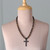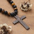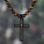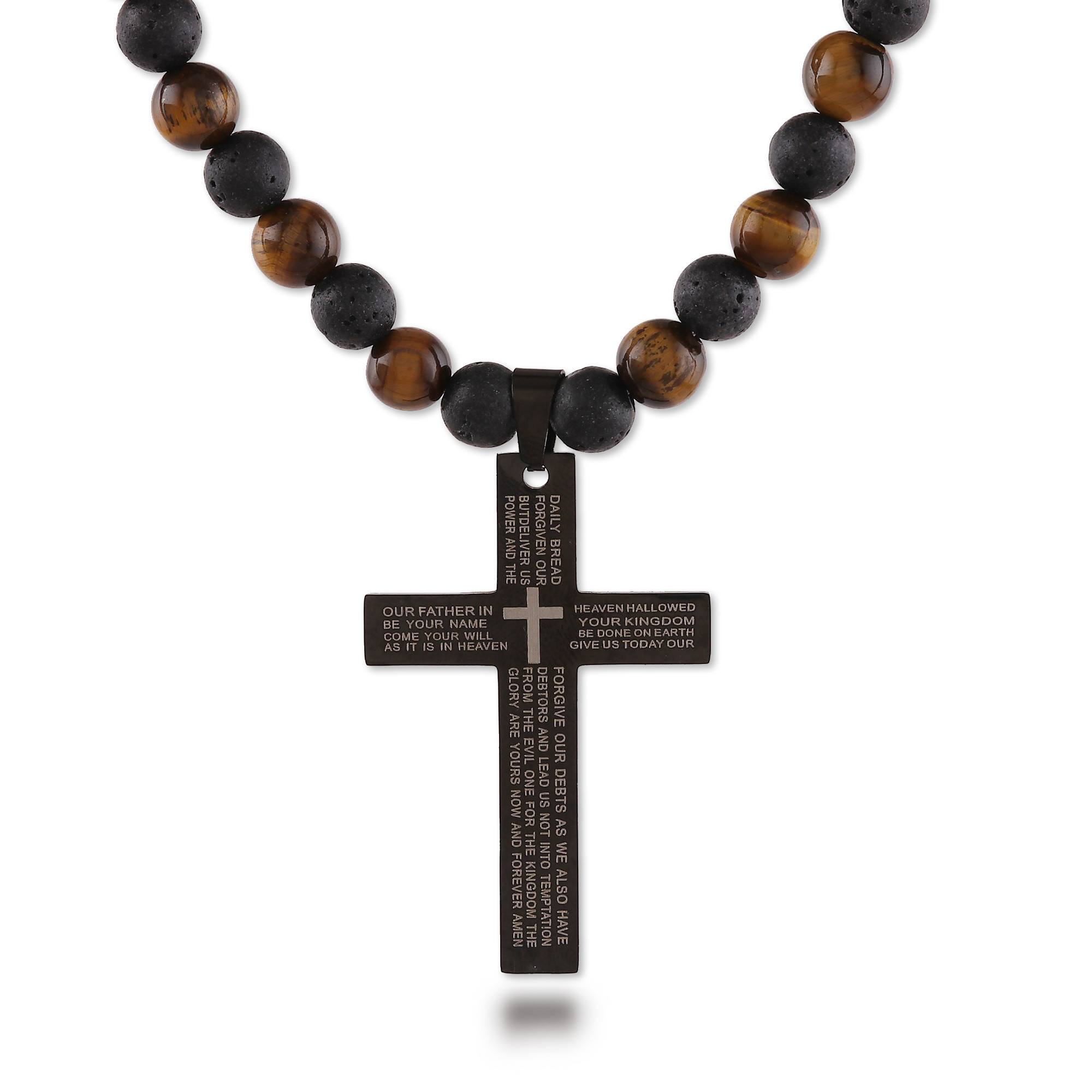 Carry your devotion anywhere you go with this sublime necklace featuring a stainless steel cross pendant with the Lord's Prayer intricately engraved in it. Designed by India's Sumit Dhawan, it features alternating tiger's eye and lava stone beads, creating a striking contrast between the golden-brown shimmer of the former with the matte, textured black hue of the latter. This accessory blends earthy elegance with rugged charm, making it both stylish and symbolic.