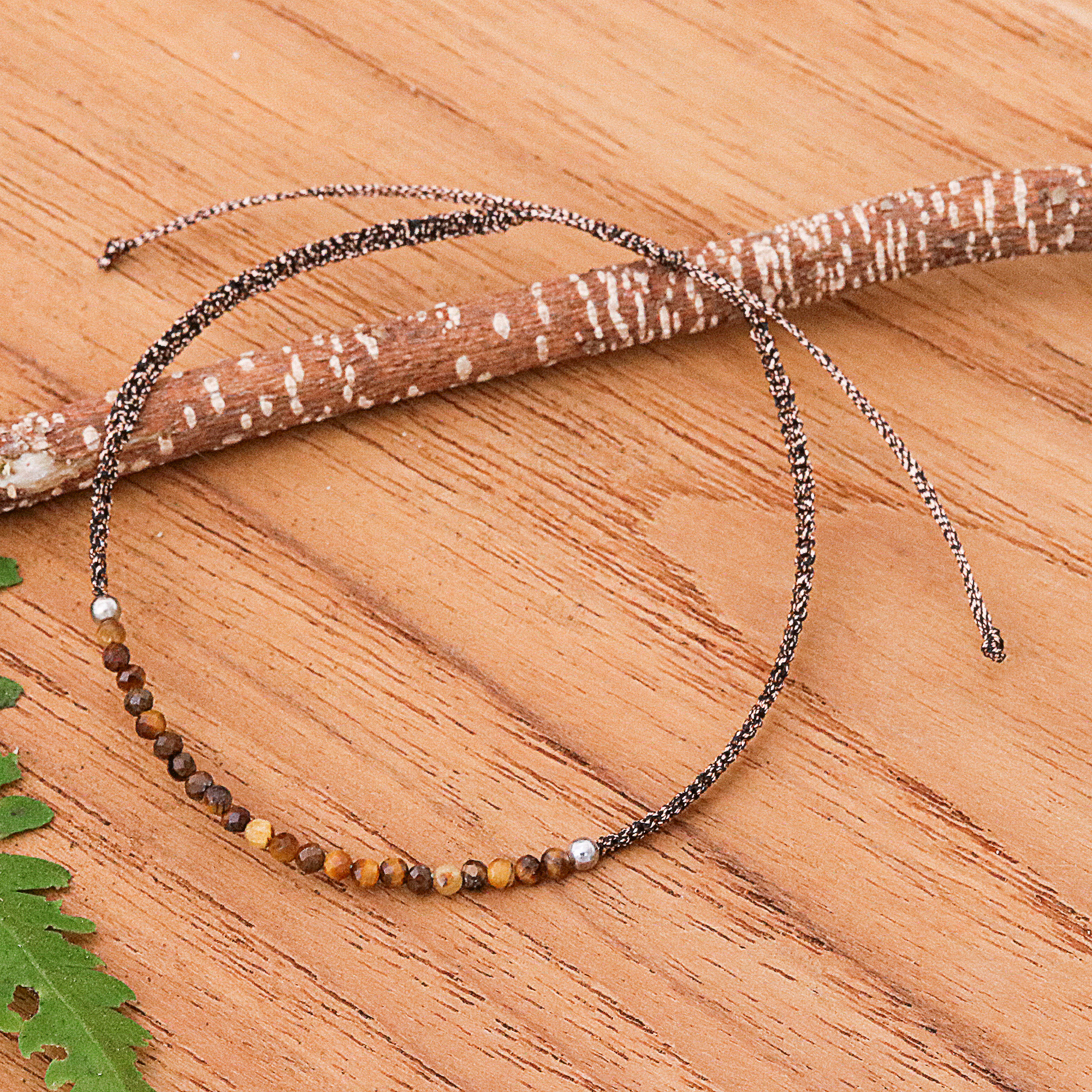 • Tiger's eye, silver-plated brass beads, nylon cord