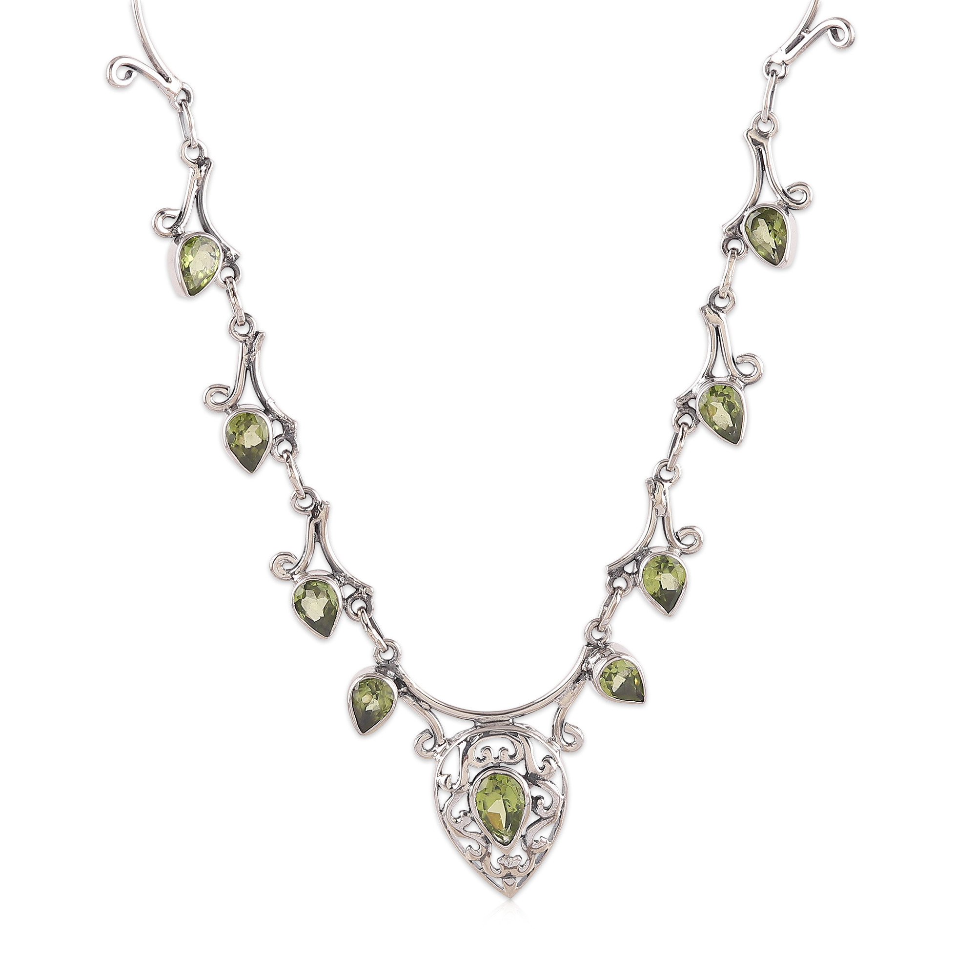 Traditional 11-Carat Natural Pear Peridot Link Necklace, 'Mughal Luck'