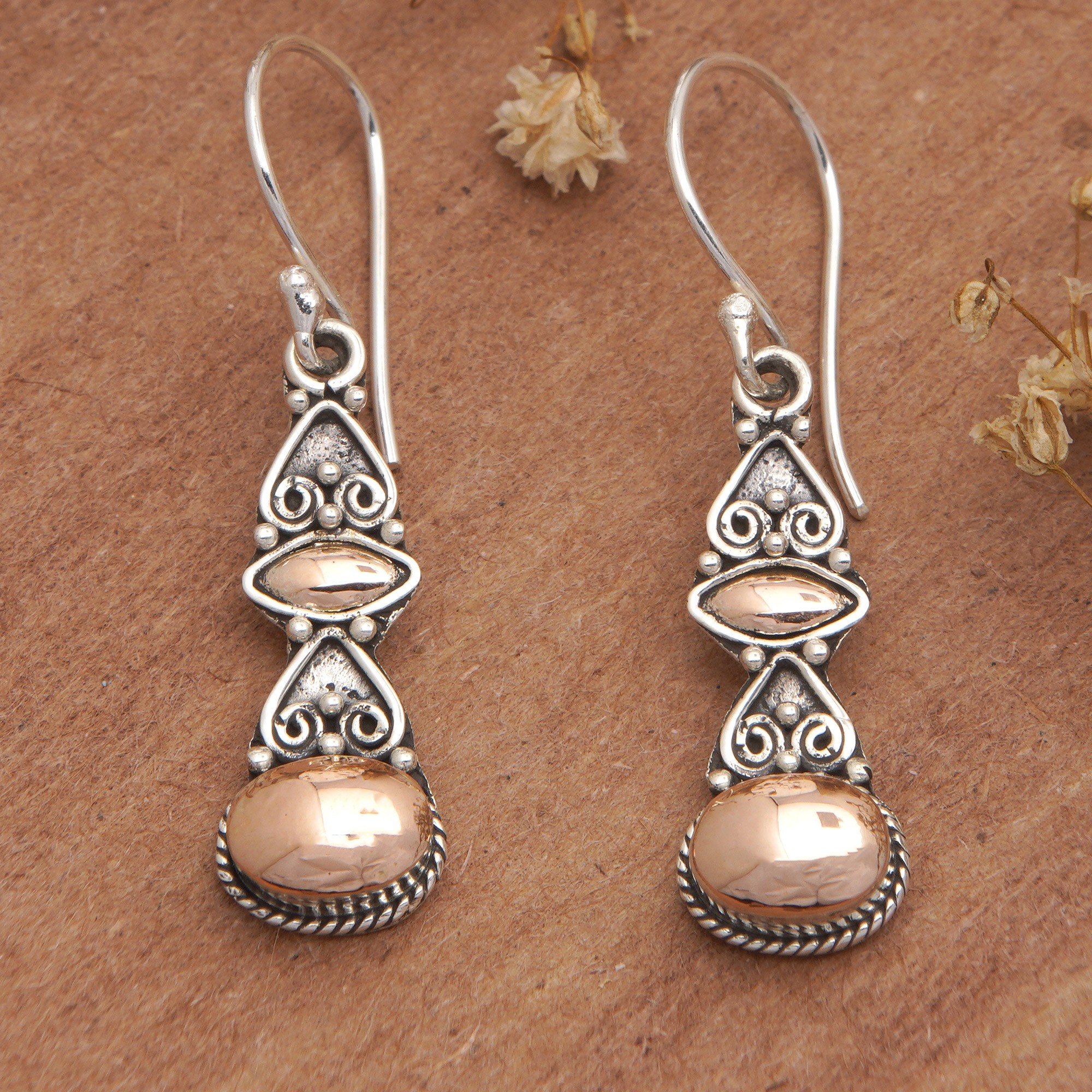 Traditional 18k Gold-Accented Dangle Earrings from Bali, 'Golden Glare'