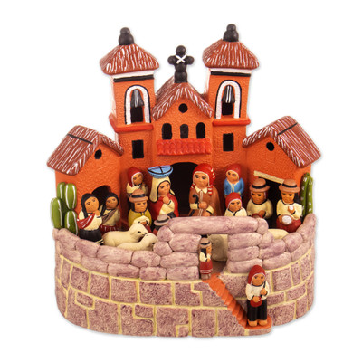 Traditional Andean Folk Art-Themed Ceramic Nativity Scene, 'Fortress of the Sun'