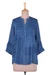 Traditional Embroidered Viscose Tunic in Azure Blue Hues, 'Enchanted Garden in Azure'