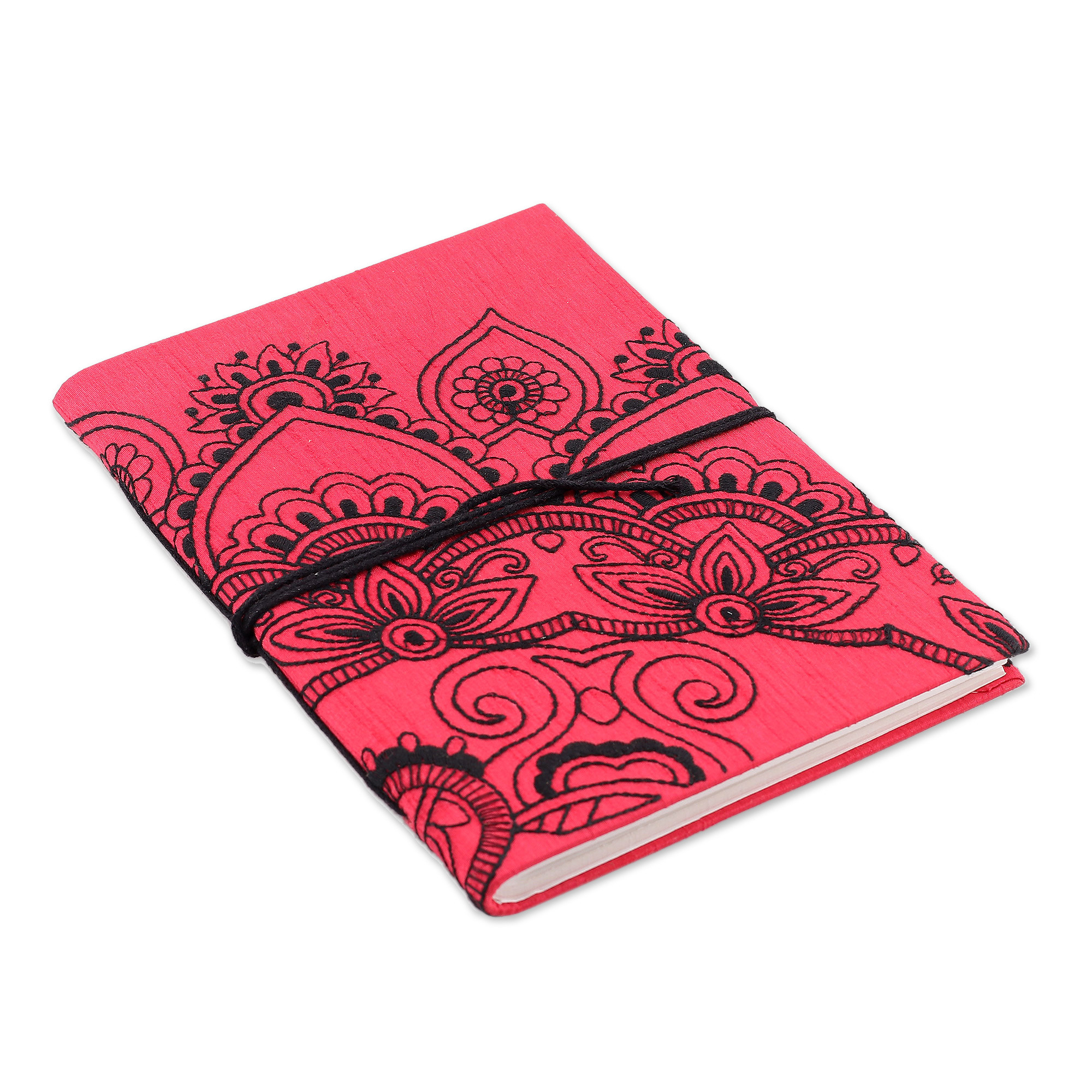 Traditional Floral Crimson and Black Handmade Paper Journal, 'Crimson Prime'
