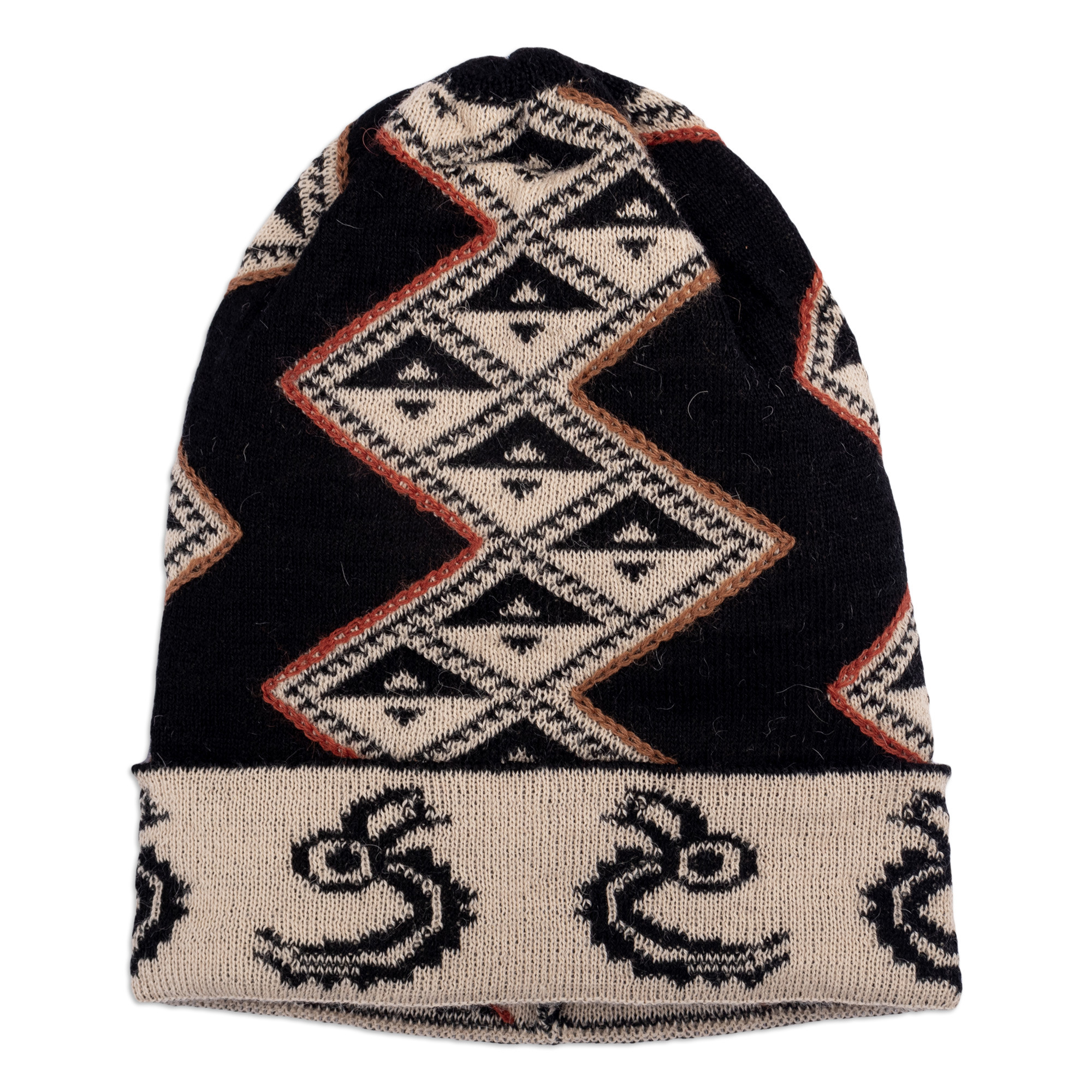 Traditional Inca Black and Beige Alpaca Blend Hat from Peru, 'Noble Origins'
