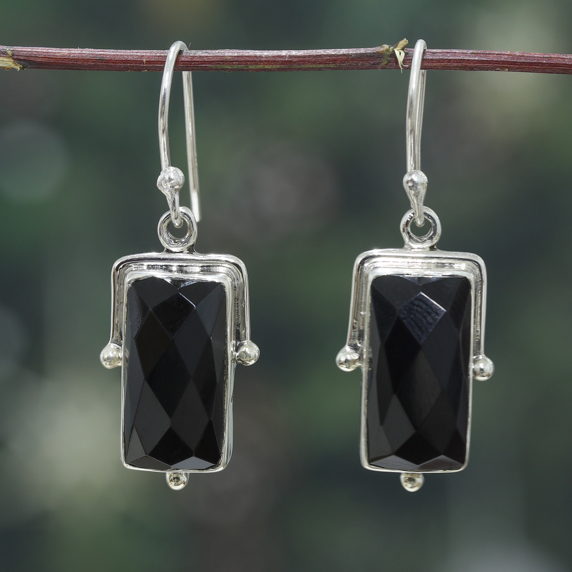 Traditional Sterling Silver and 8-Carat Onyx Dangle Earrings, 'Power of Mystery'