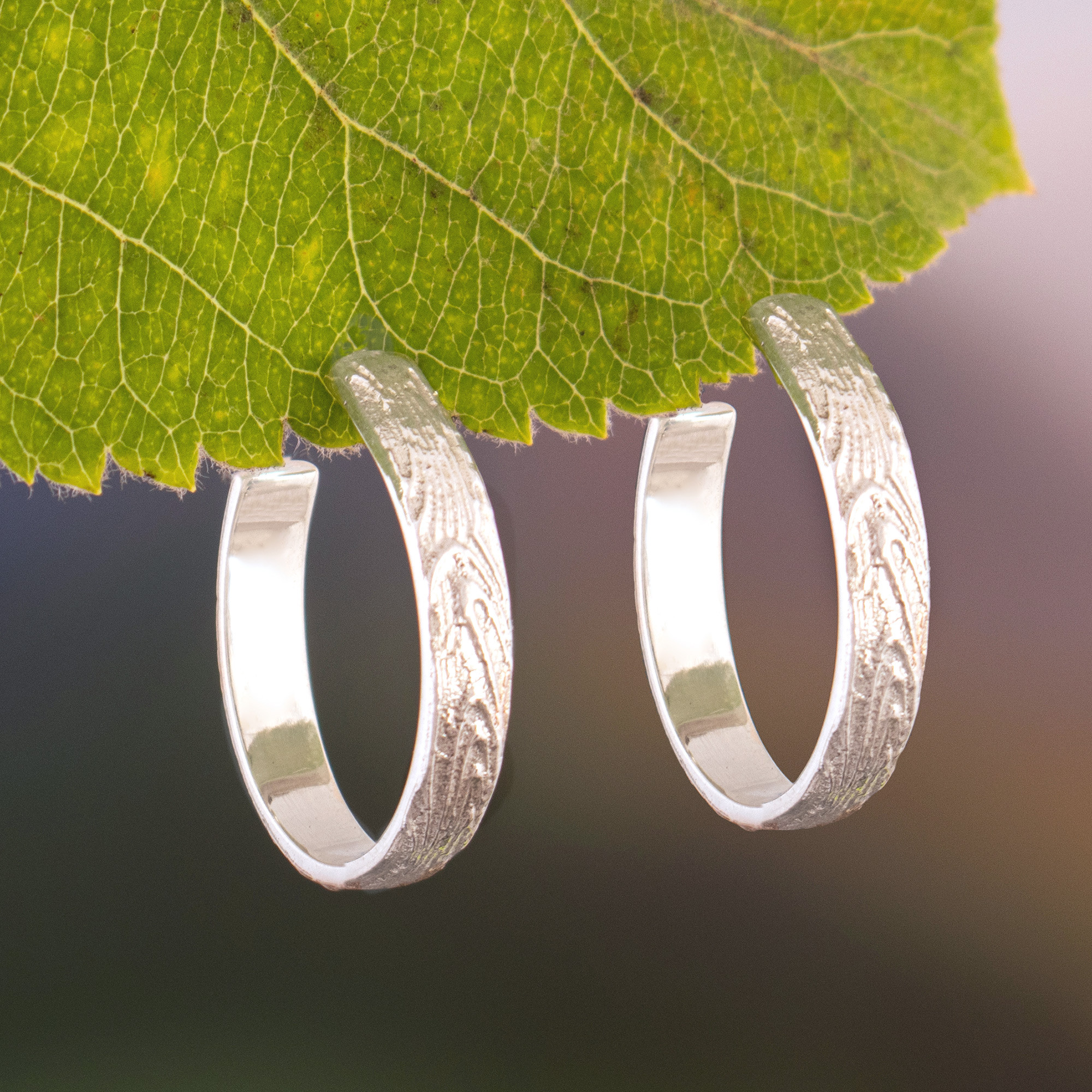 Tree Bark-Like Textured Sterling Silver Half-Hoop Earrings, 'Cedar in the Forest'
