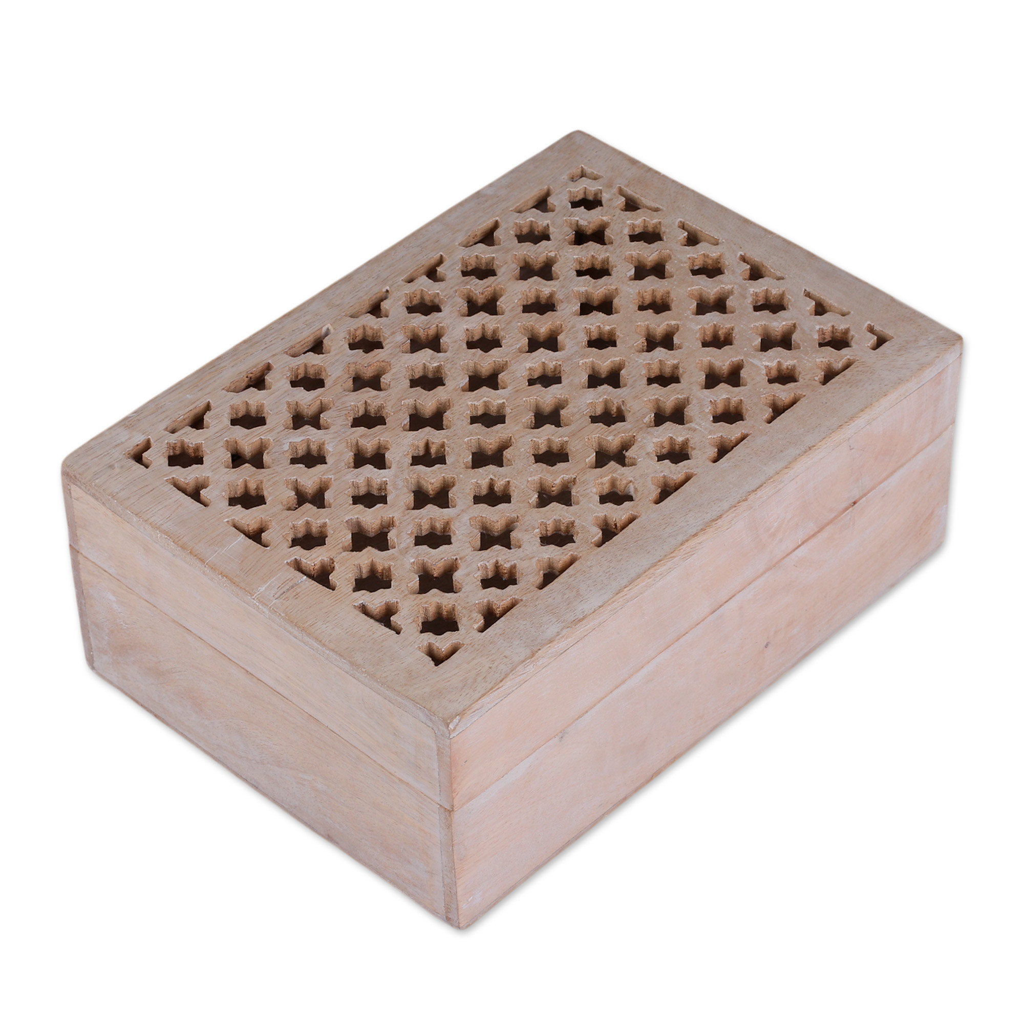 India's Mela Artisans invite you to keep your beloved treasures under the veil of trellis beauty. The team works with mango wood to craft this box, whose trellis-patterned lid makes it a sublime home accent. Made in a large size, the piece displays a bright natural hue.