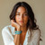 Paint your days with a turquoise hue of calm and refreshing sensations with Rahul Jain's bangle bracelets. Crafted by talented artisans from the Indian region, the pair decorates its hand-carved buffalo bone structure with an aqua hue evoking the waters of a paradisiacal island.