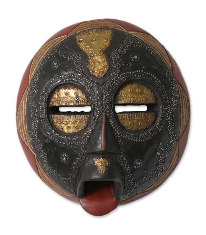 She is elegant with a halo of stars and ornate repoussé motifs. Her eyes are golden, her lips red. Godfred France creates this beautiful African mask in an original design he names Inbuku, "Caring" in the Hausa language. "I came up with this mask based on the love I have for my mother. She has been very supportive and caring," he says. "Mothers all over the world, you are wonderful and I appreciate you!"