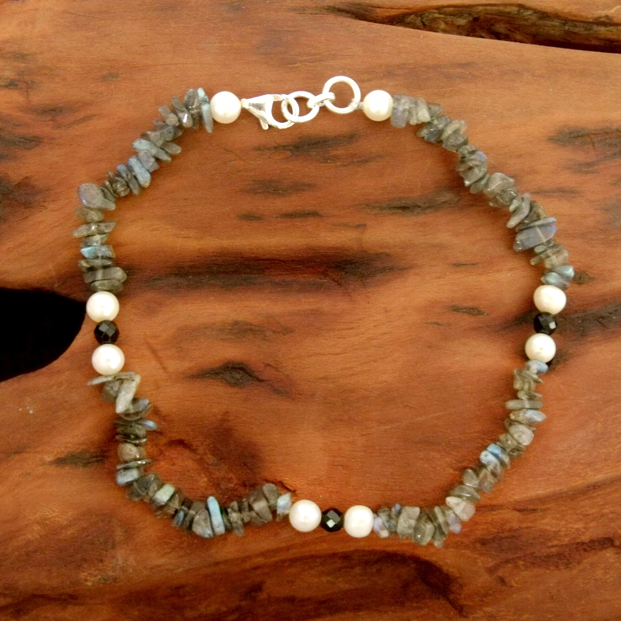 • Sterling silver, freshwater pearls, labradorite and onyx