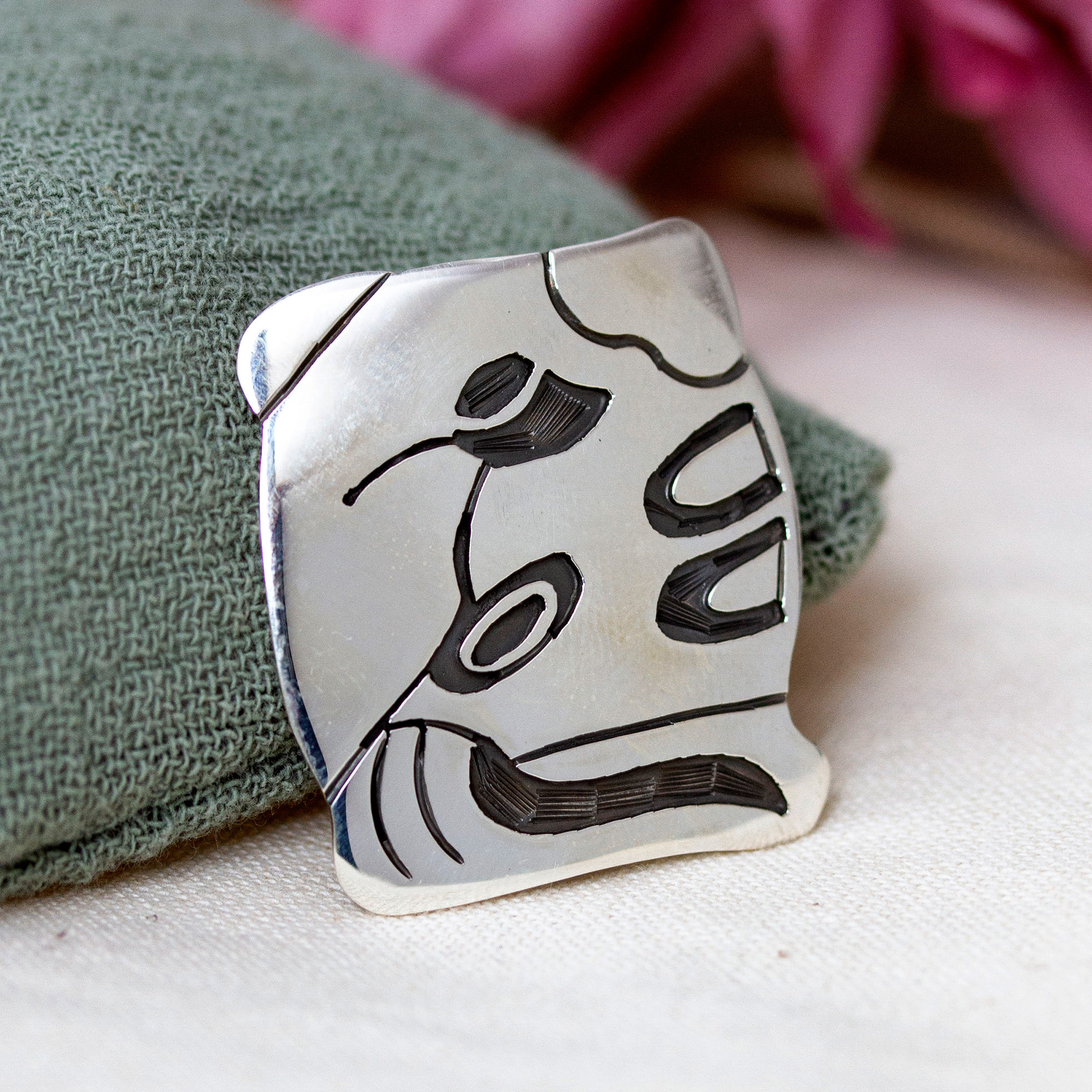 Roy Nilson expertly replicates the canine glyph of Xul, which identifies the sixth month of the Maya Haab calendar. Meaning, "limit" as well as "ending," the Xul month hosted the Hanal Pixan celebrations, similar in meaning to Mexico's Day of the Dead celebrations. Xul also means "wisdom," and it is the month in which the land is sowed. The pendant is crafted of sterling silver.